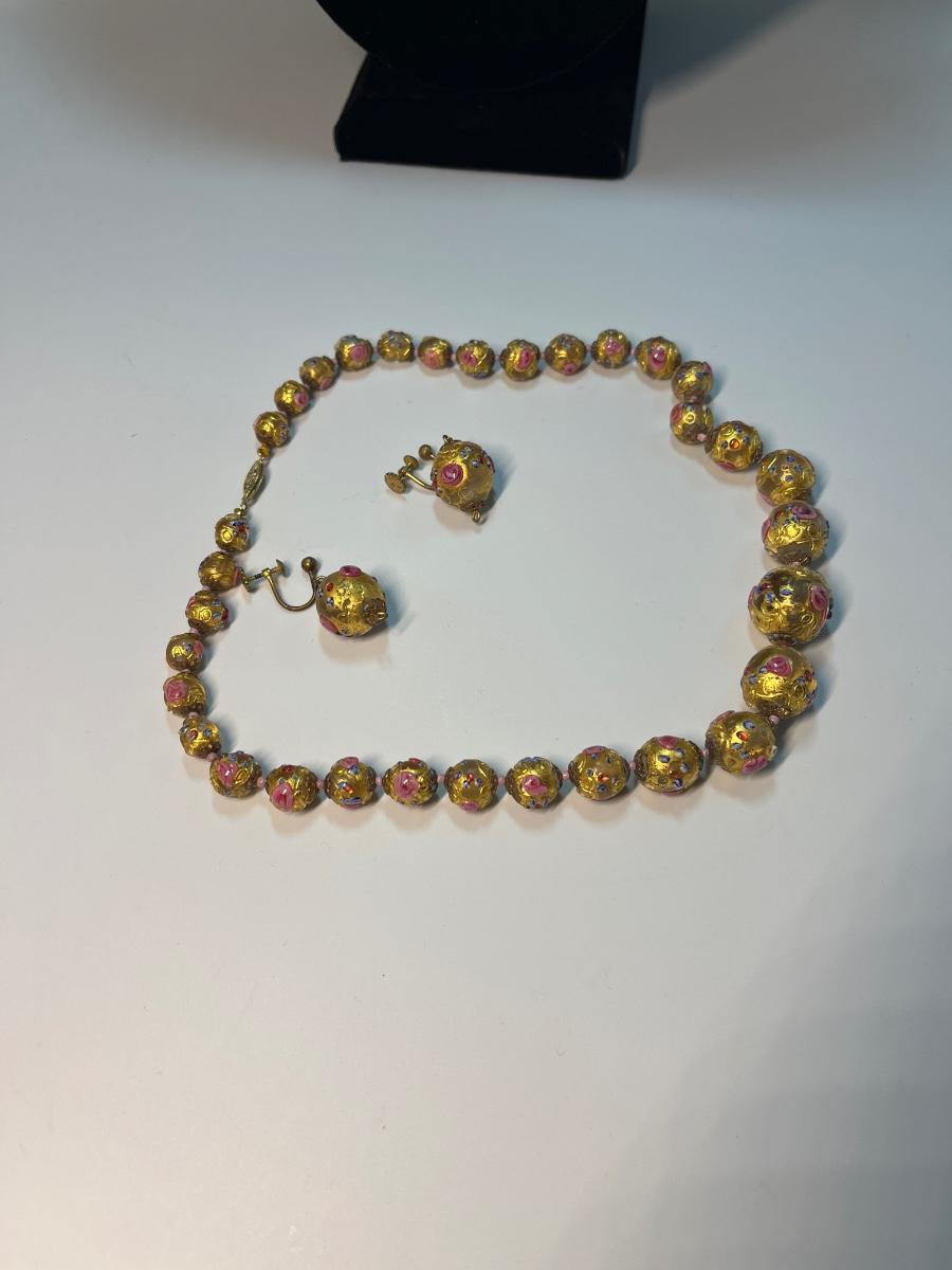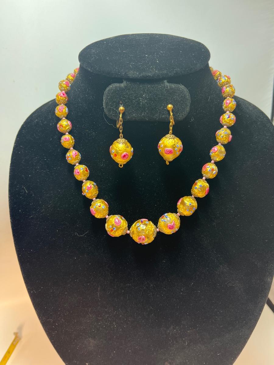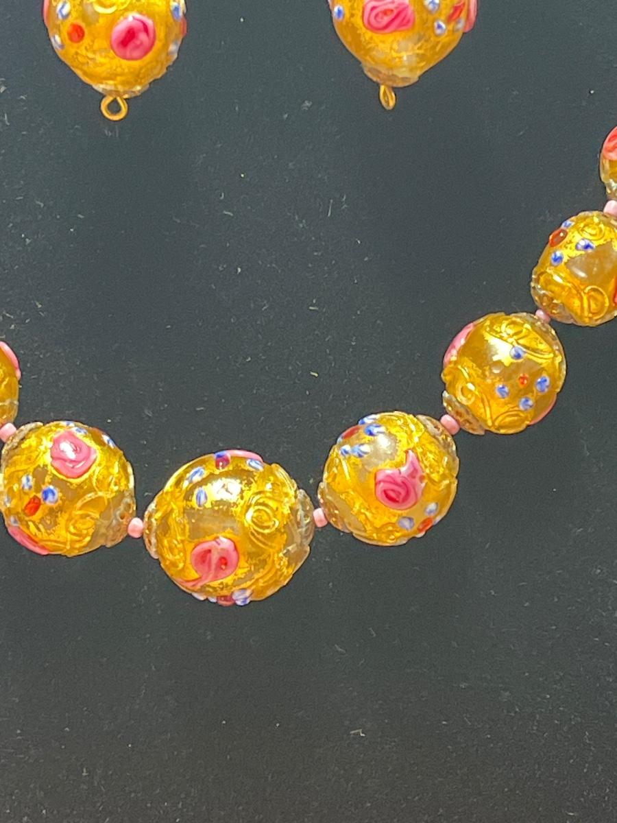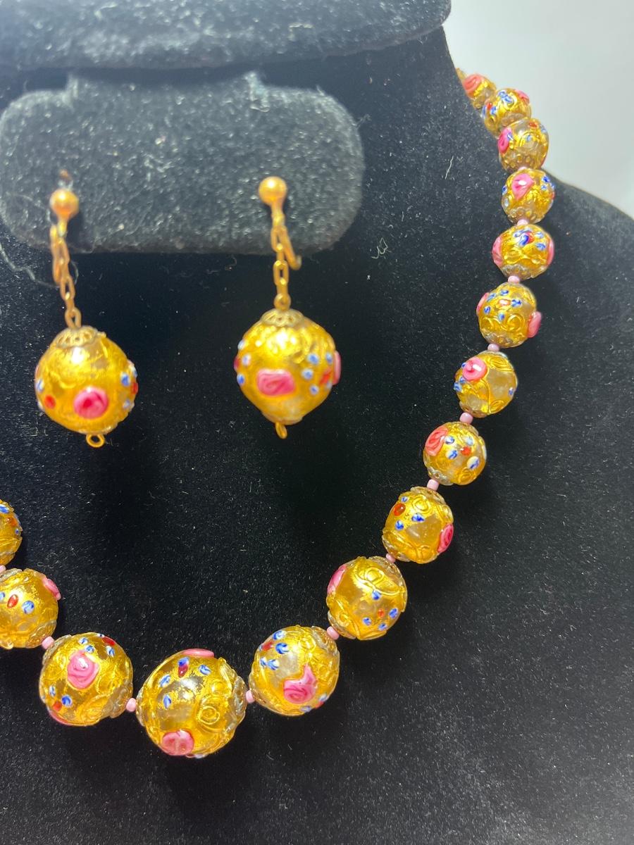 Wedding cake Venetian glass bead necklace and clip on earrings.