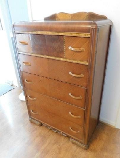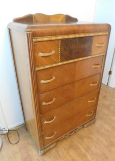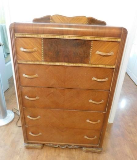Art Deco Waterfall 5 Drawer Dresser 33" x 52" has some expected wear and scratches