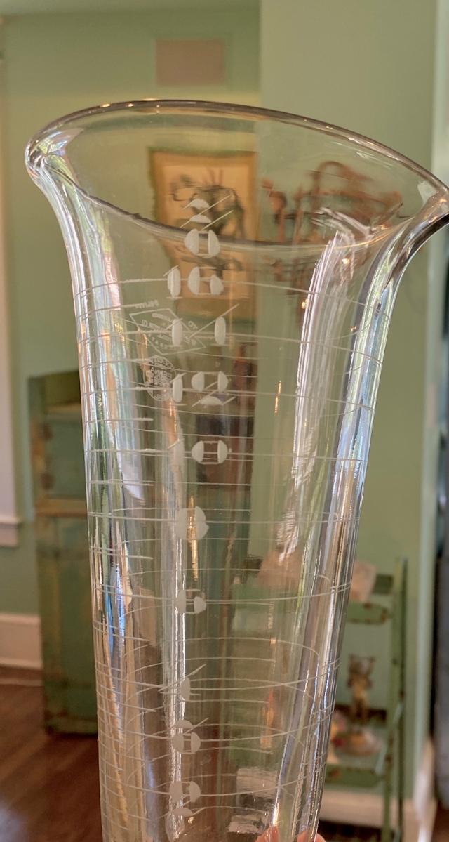 Antique ART DECO Whitehall Tatum Glass Beaker/ Pitcher , etched numbering