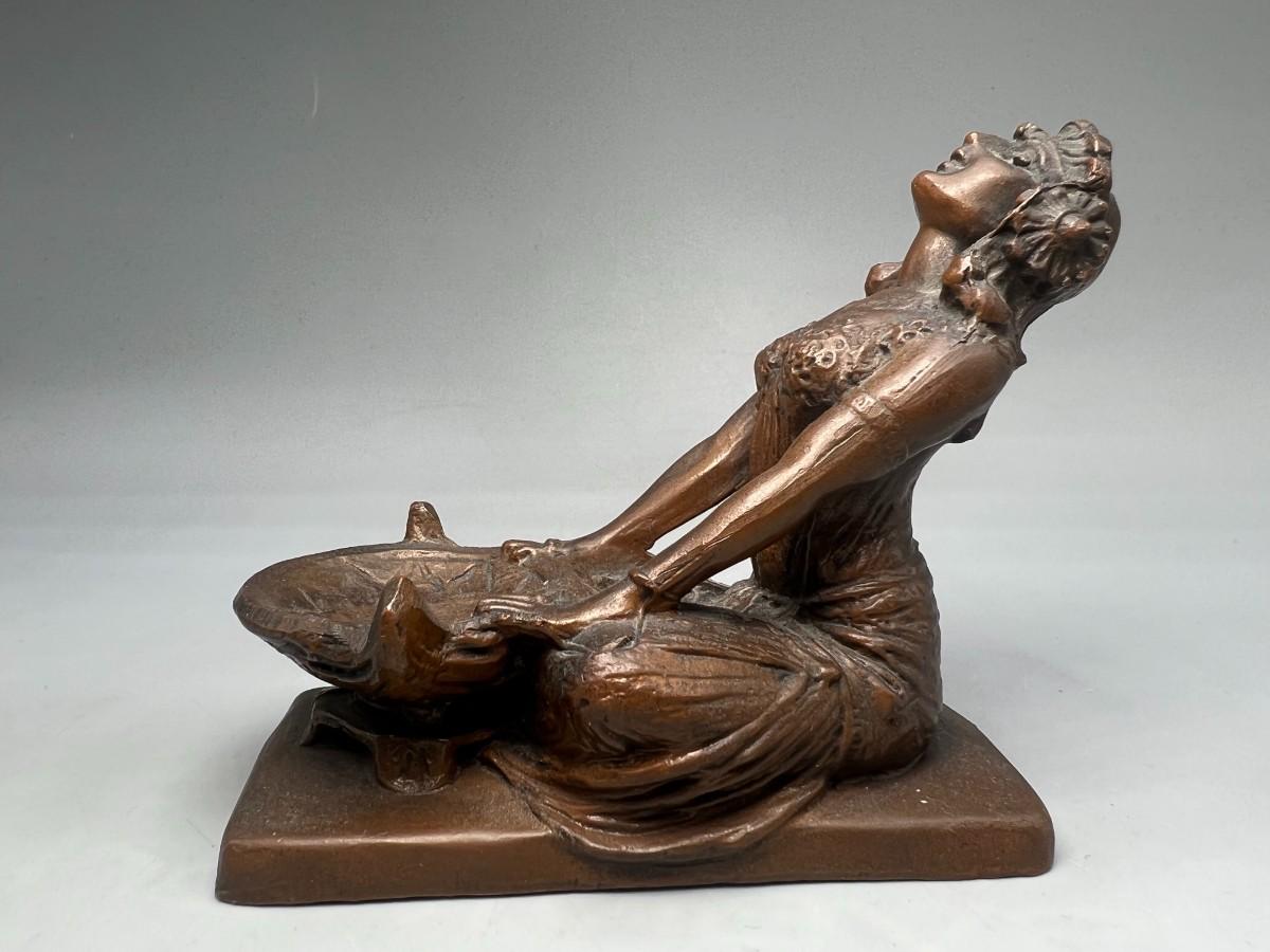 Antique Art Nouveau Bronze Egyptian Woman Incense Burner Weidlich Bros. WB Statue