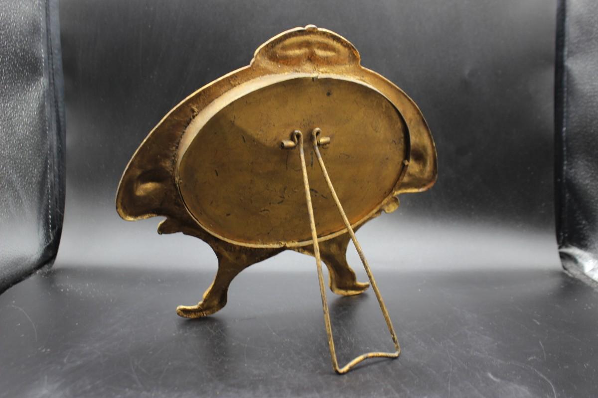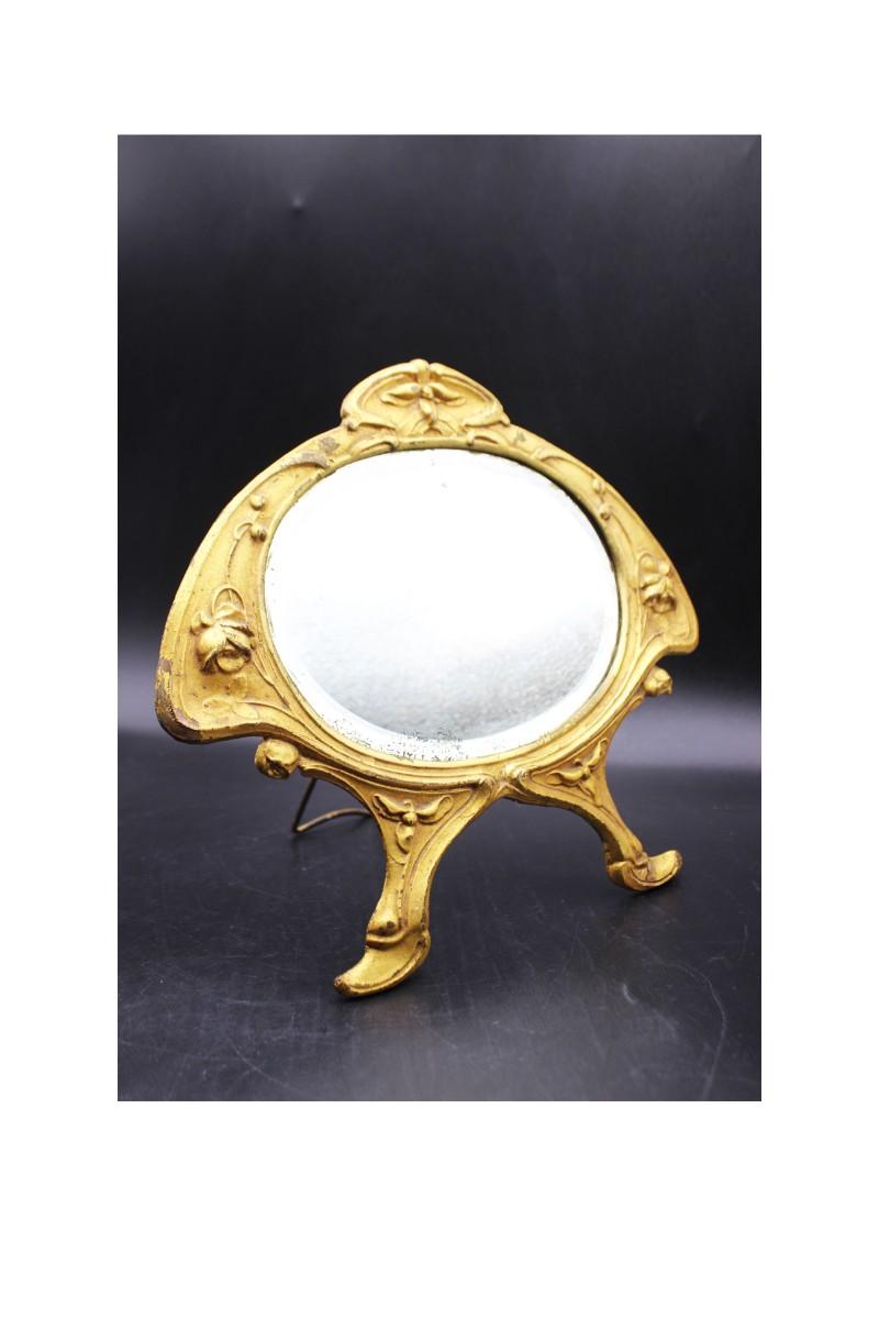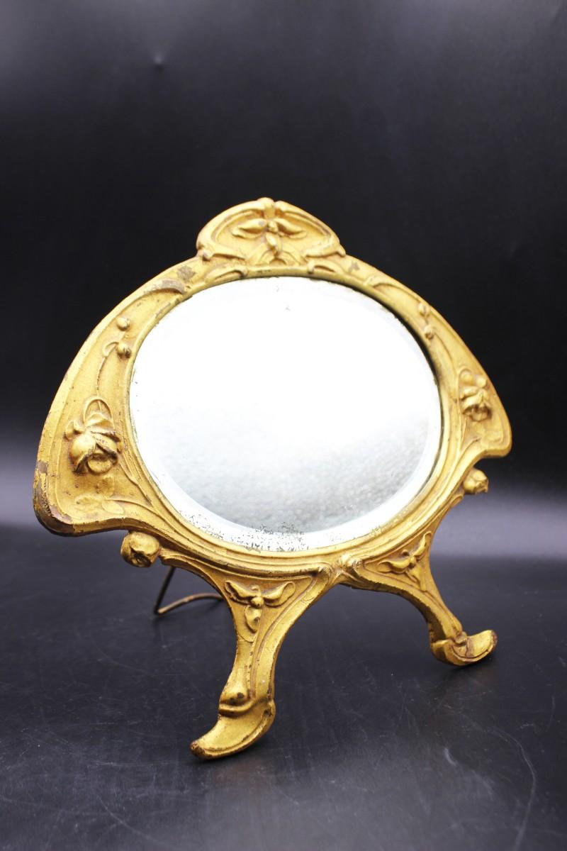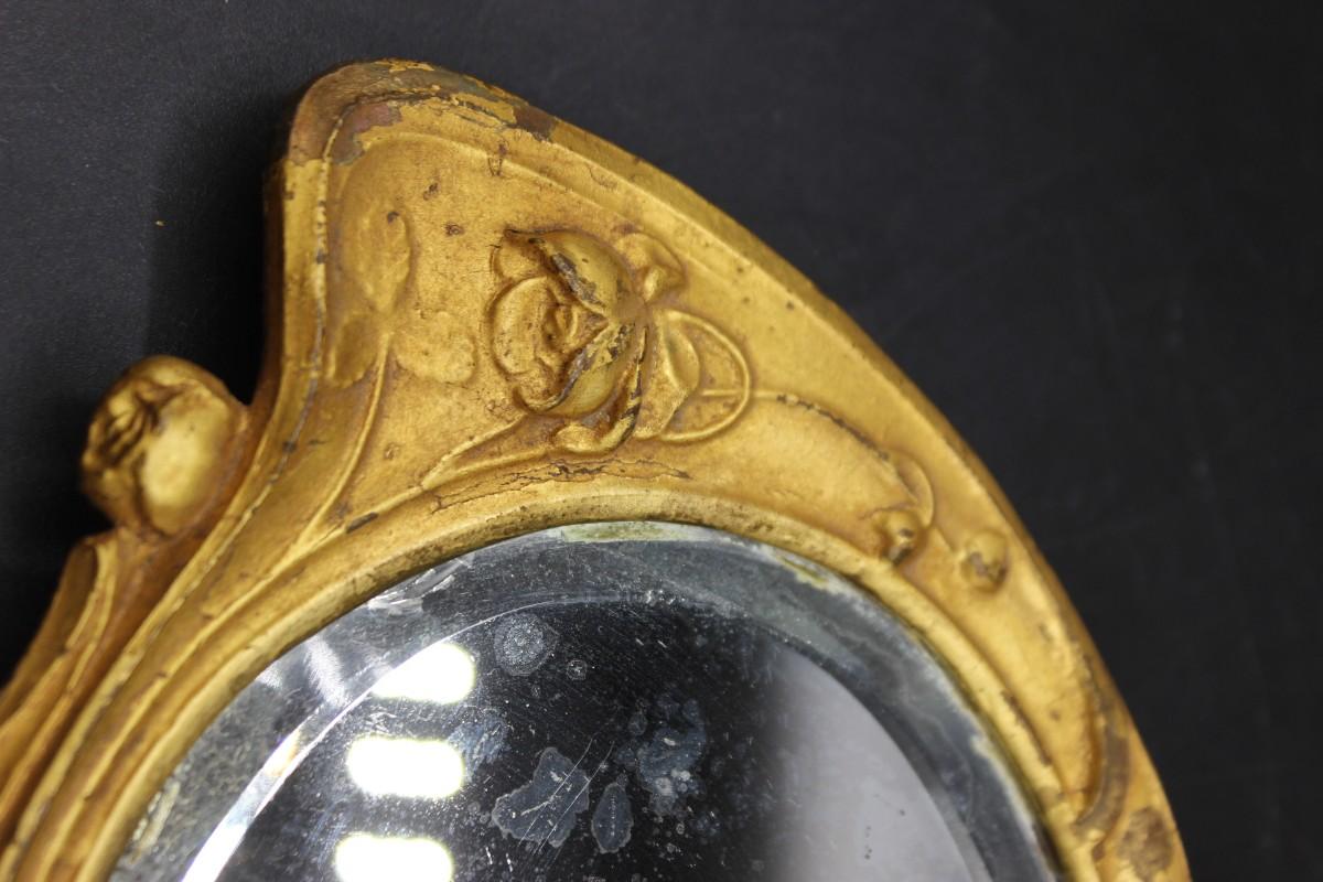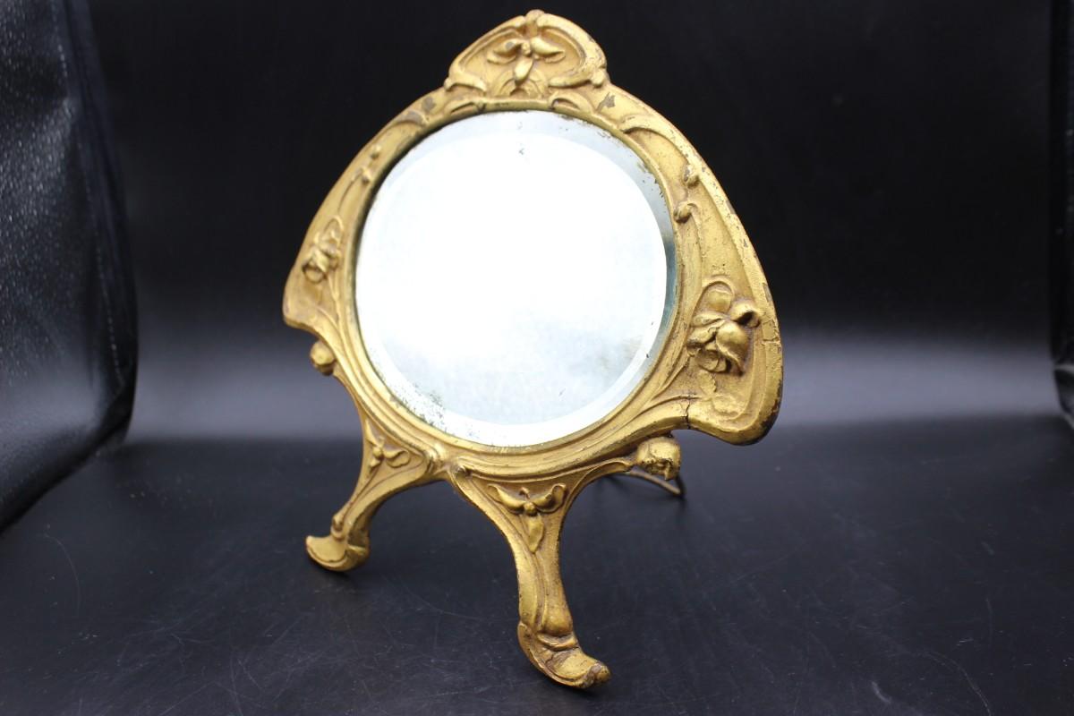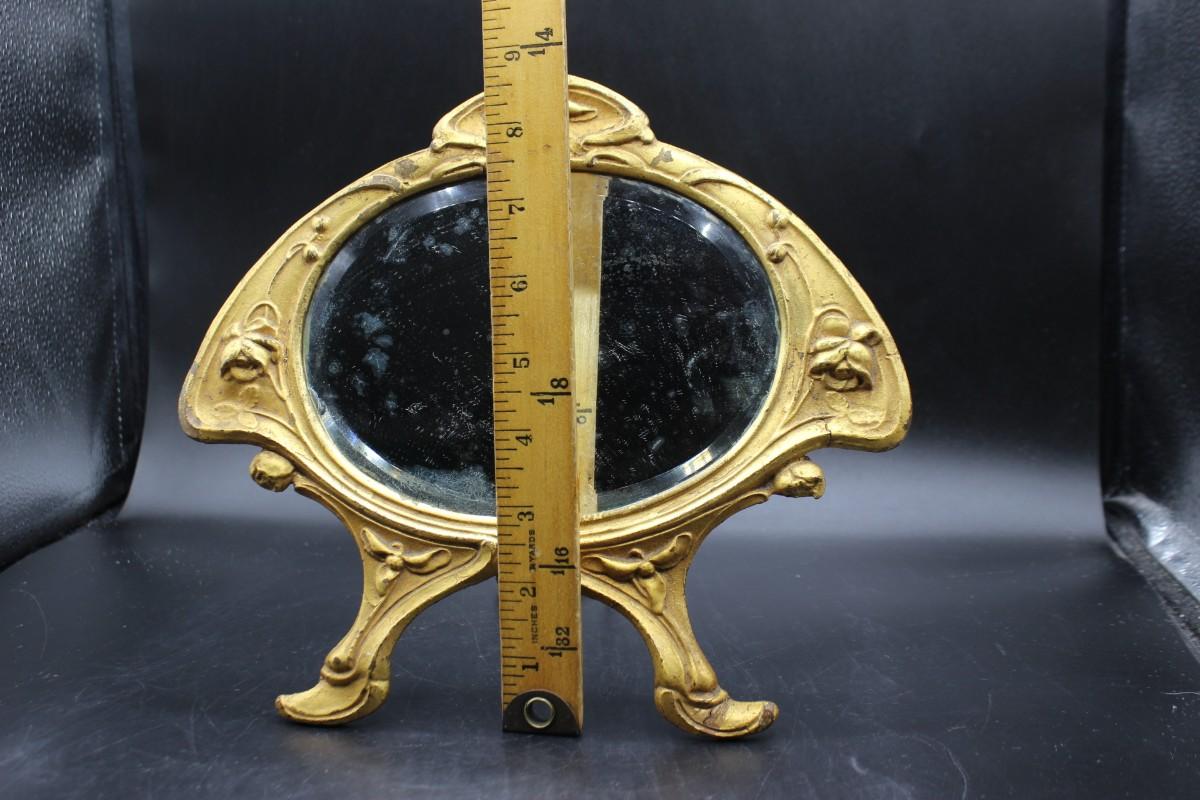 Antique Art Nouveau Bronze Rose Vanity Makeup Powder Mirror, there is no significant damage to the mirror or frame and is in good condition. The mirror has a stand in the back and can be supported on its own, check pictures for more details and for sizing.