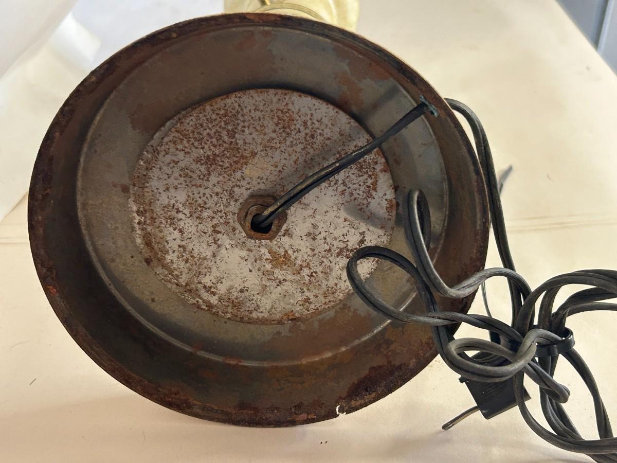 Disclosures: We could not test the lamp as the plug is broken. As with all vintage electrical items, we recommend a professional evaluation. The lamp requires a complete restoration, hence the low price. (See pictures for details.)