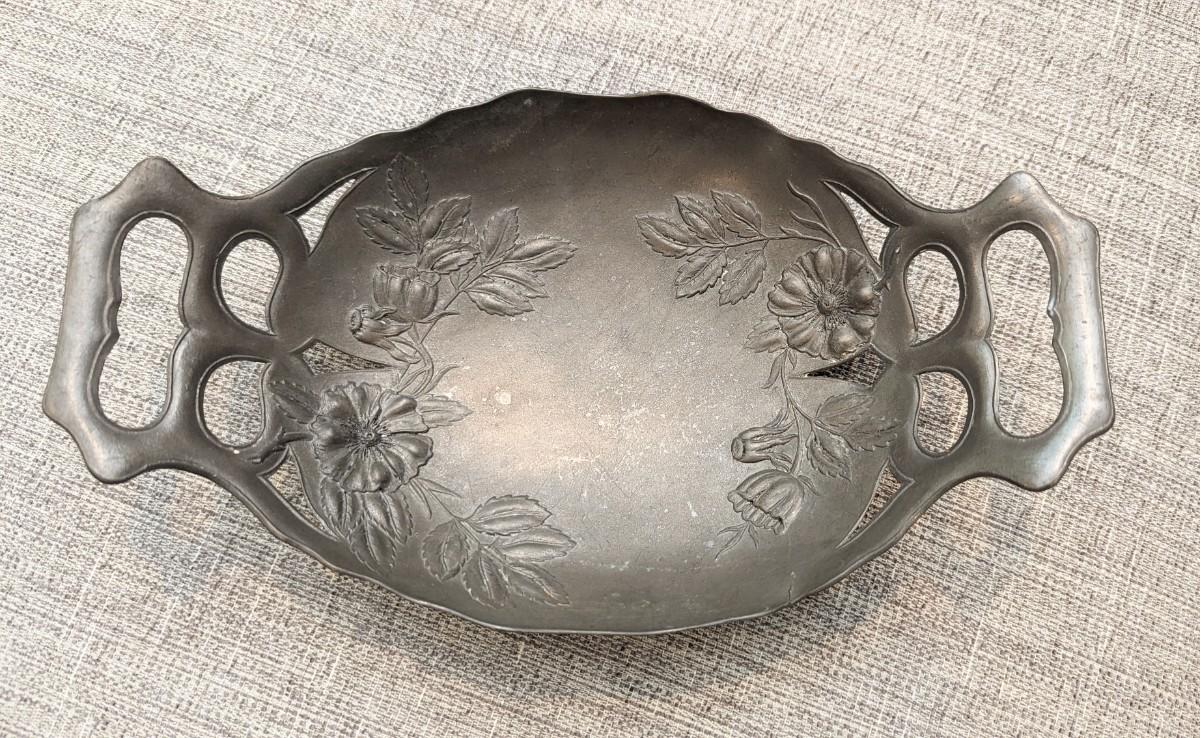 Antique Art Nouveau Pewter bowl tray Floral motif. @1905-1910