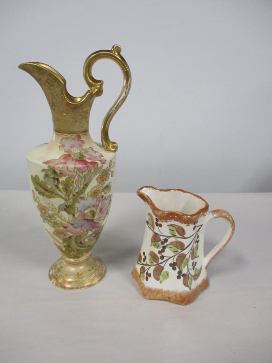 Antique Art Nouveau Porcelain Royal Bonn Floral Hand Painted  Pitcher & Cash Family Hand Painted Pitcher