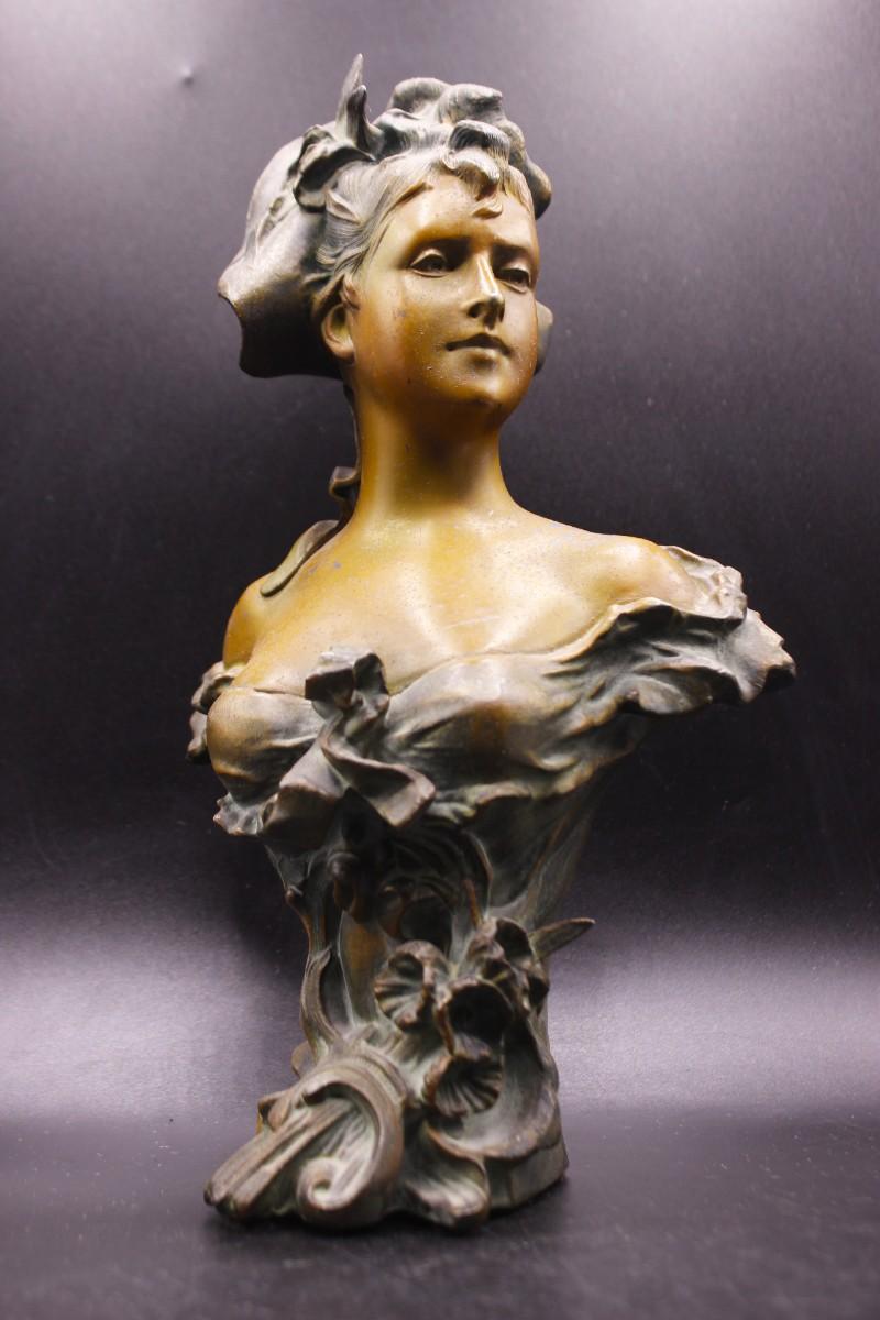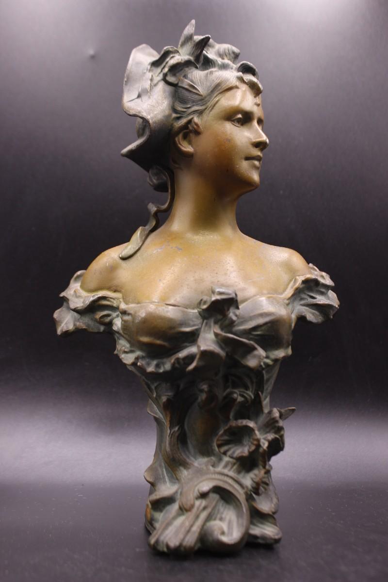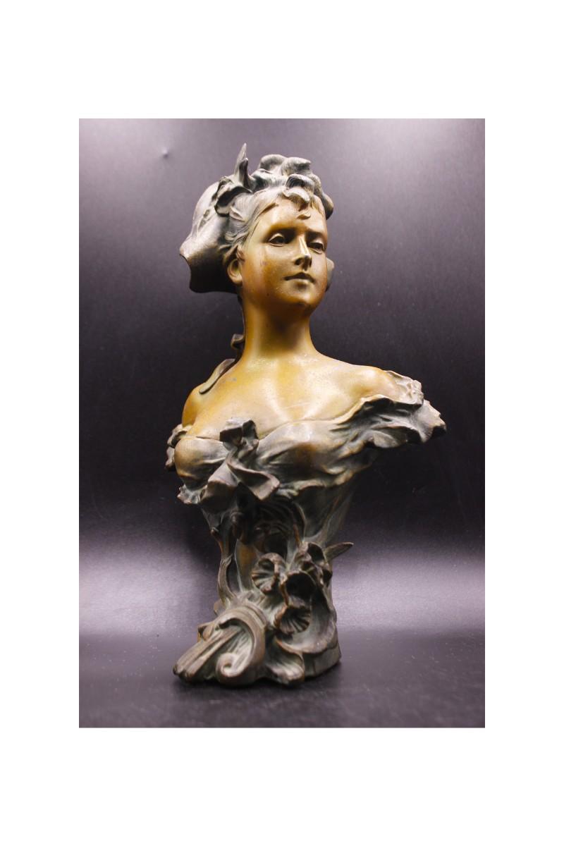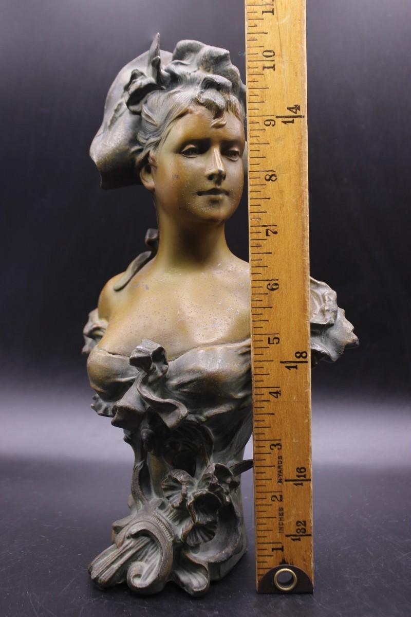 Antique Art Nouveau Victorian Styled Woman Spelter Bust