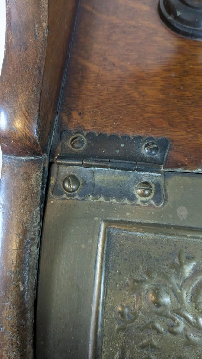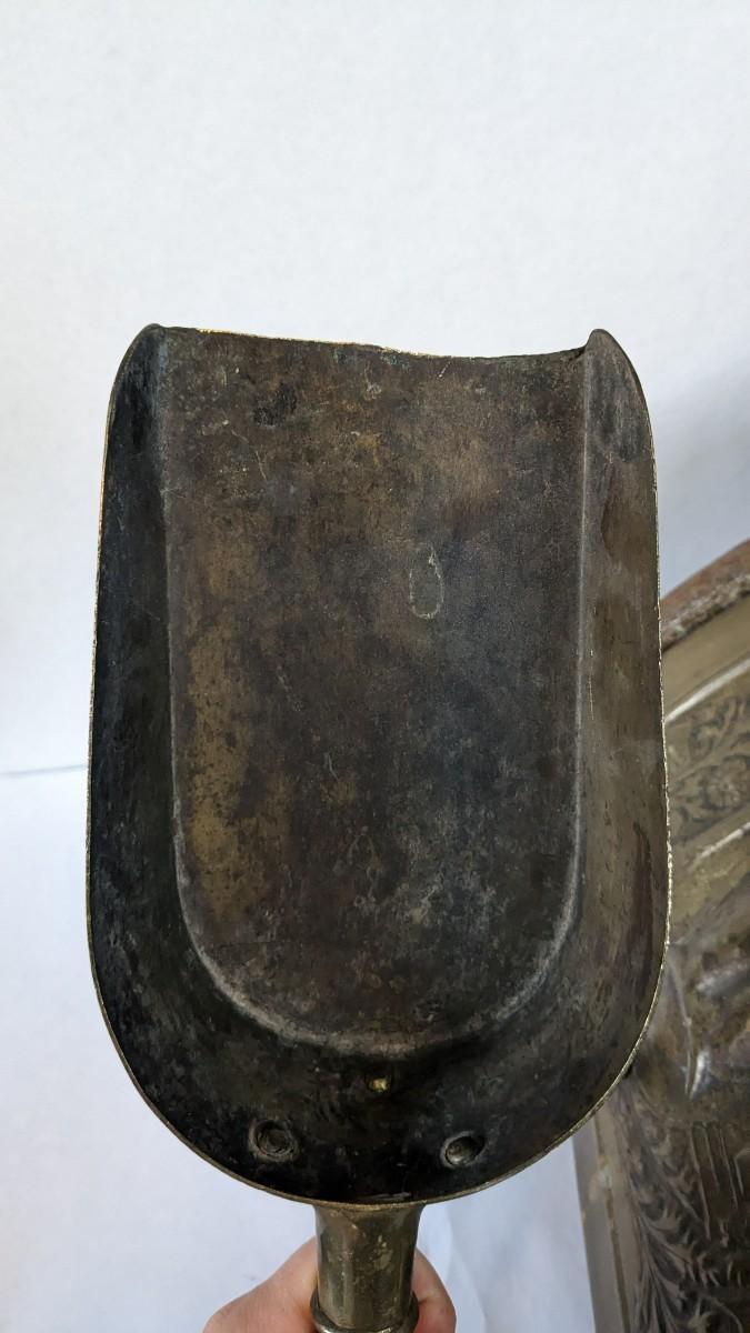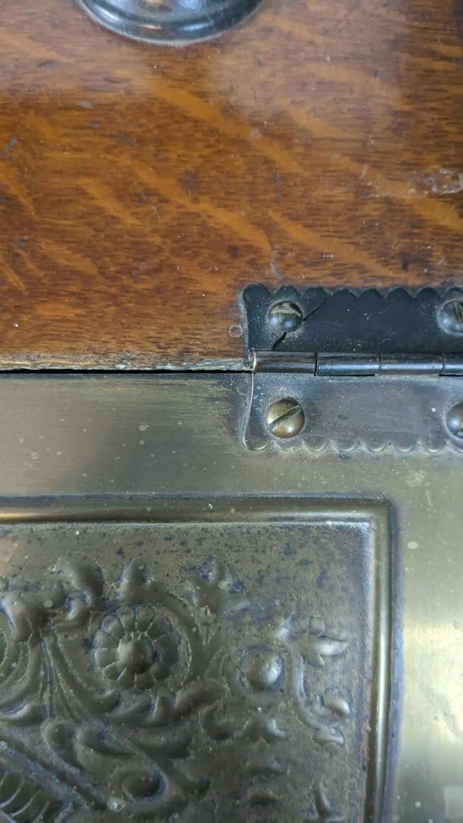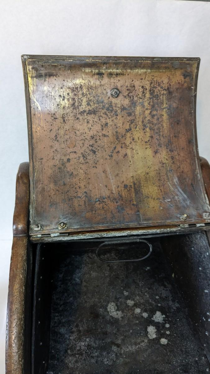 Antique Arts & Crafts Era Brass Panel Coal Box W/ Scoop