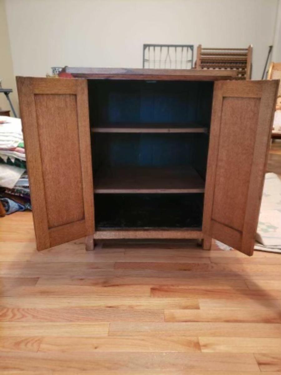 Antique Arts & Crafts Mission Style Oak cabinet. Circa 1920. 31H x 25w x 21D. Excellent Condition.