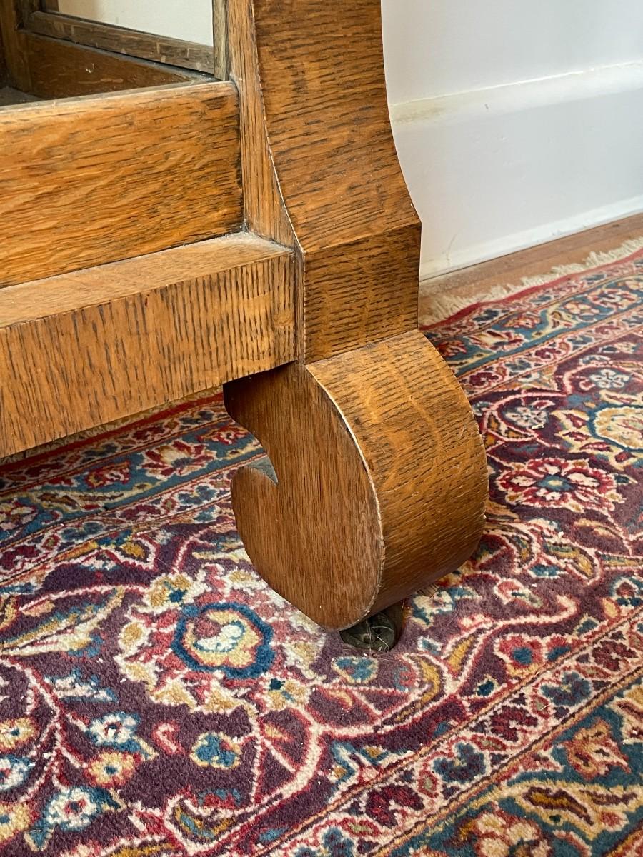 Antique arts-and-crafts tiger oak 4-shelf china cabinet