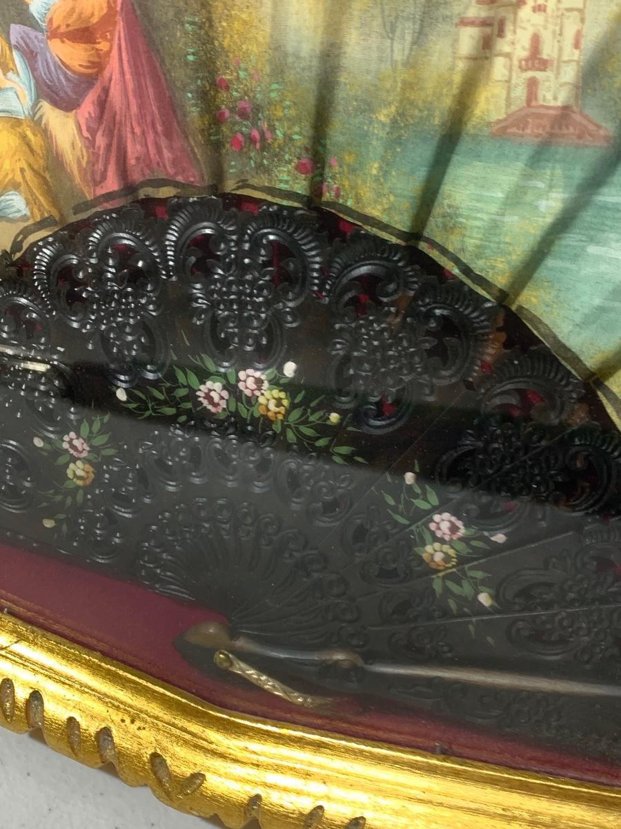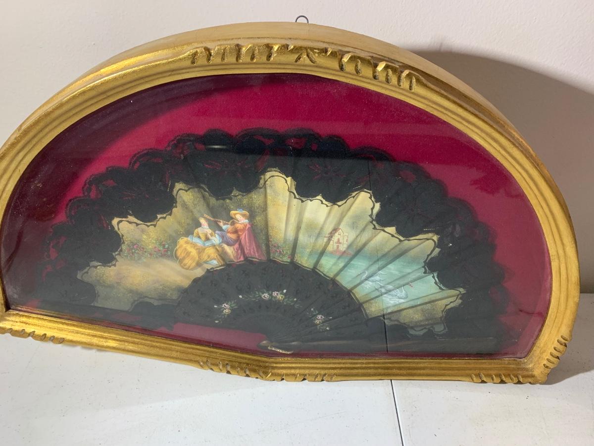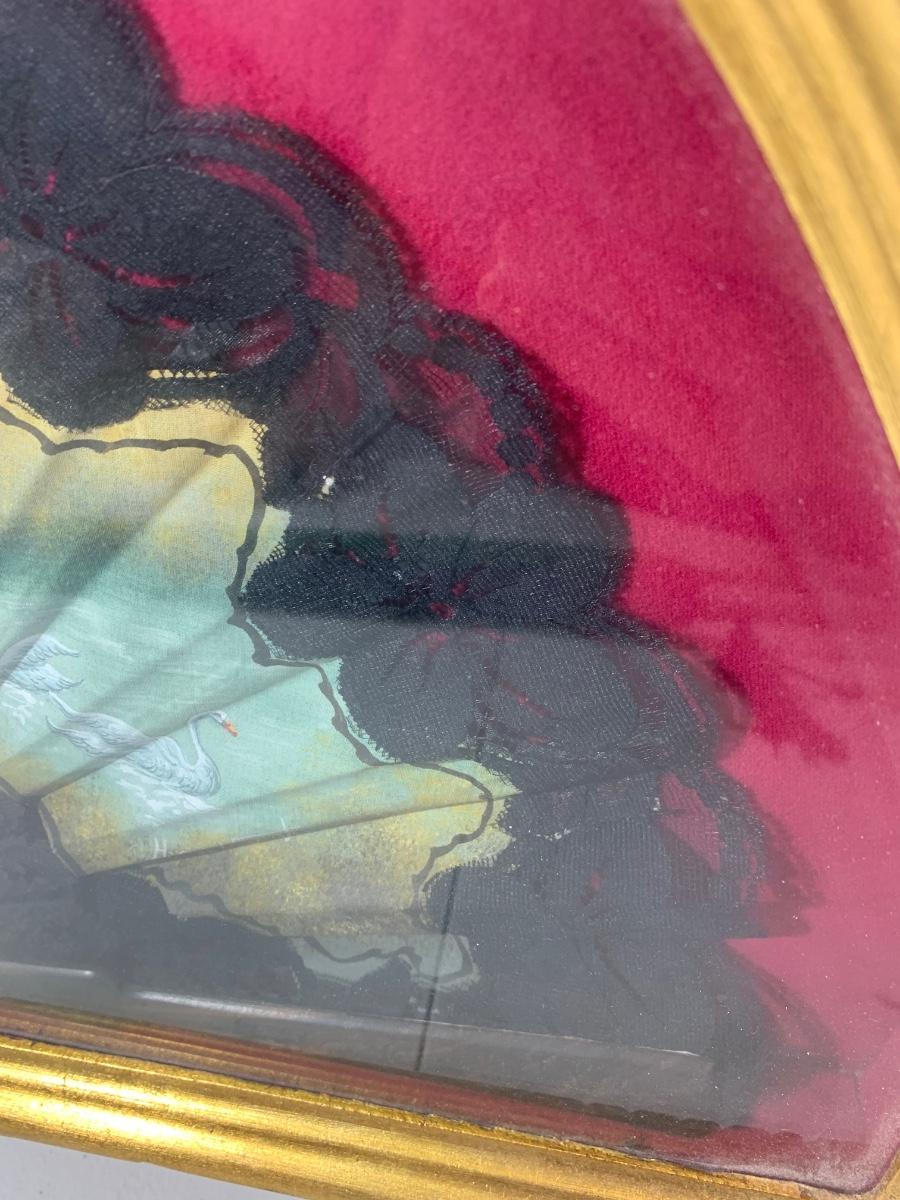 Antique Asian Fan Framed/Mounted Behind Glass