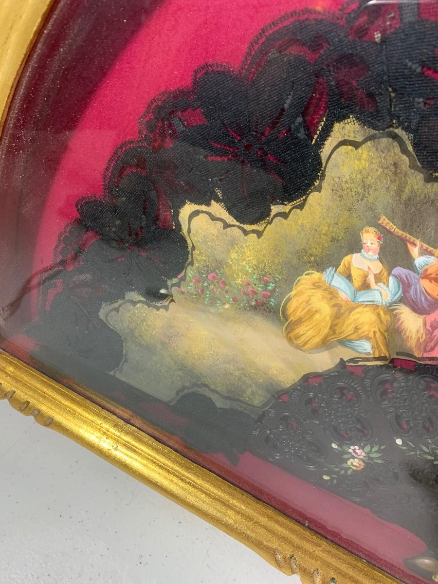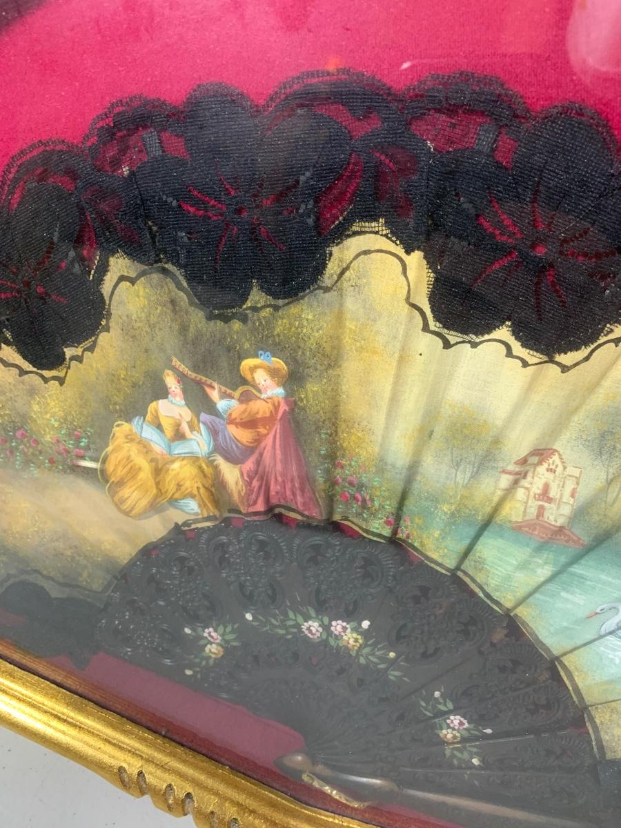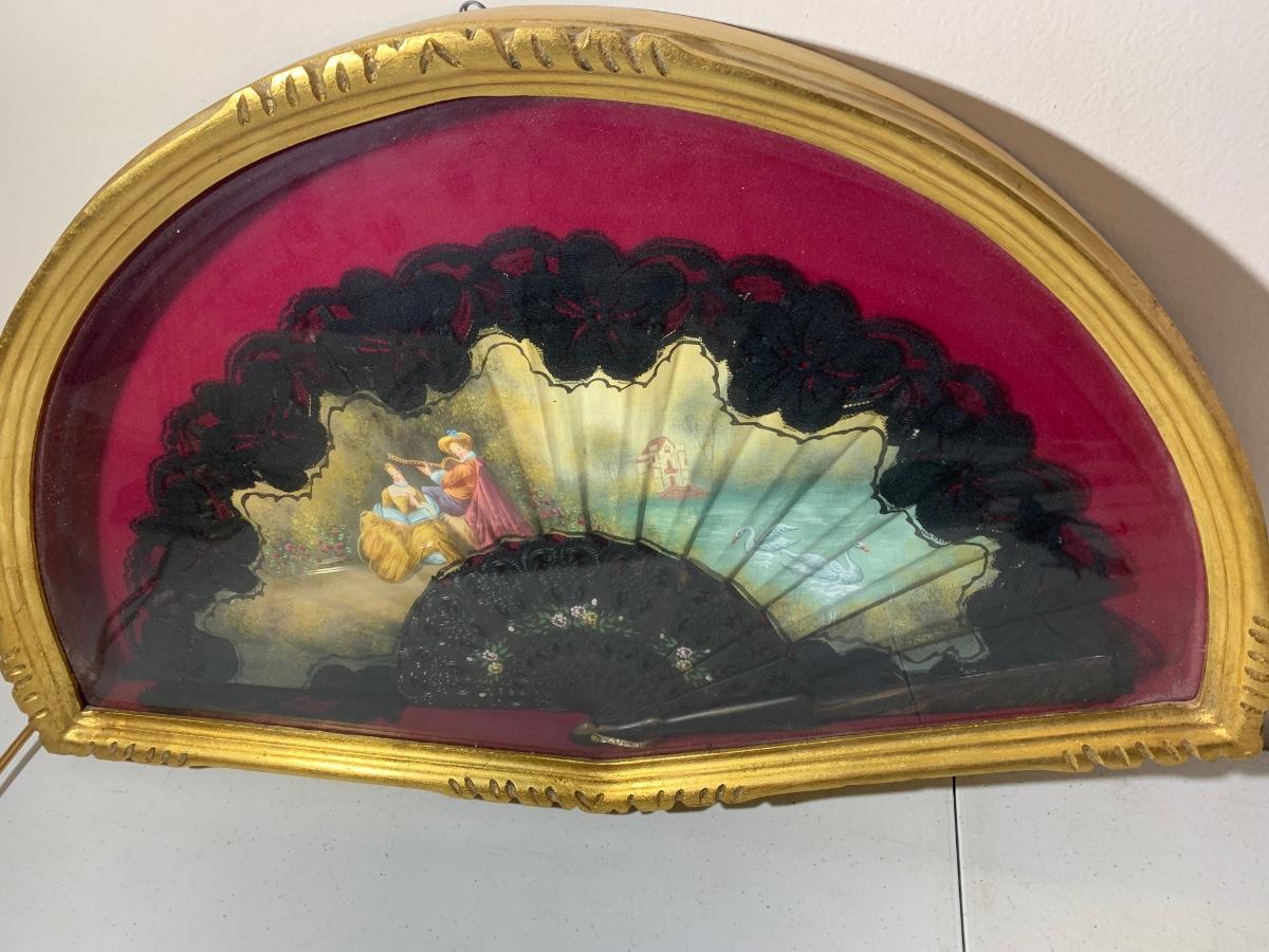 Antique Asian Fan Framed/Mounted Behind Glass