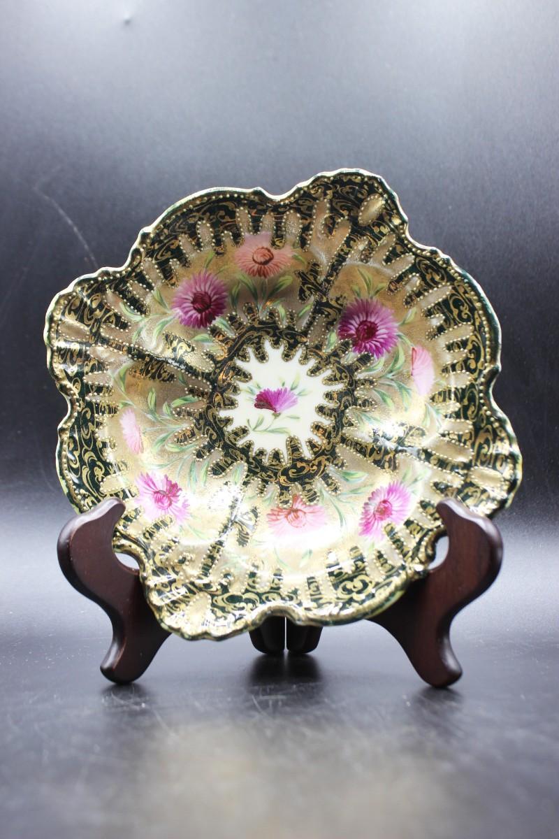 Antique Asian Oriental Floral Chrysanthemum Moriage Bowl