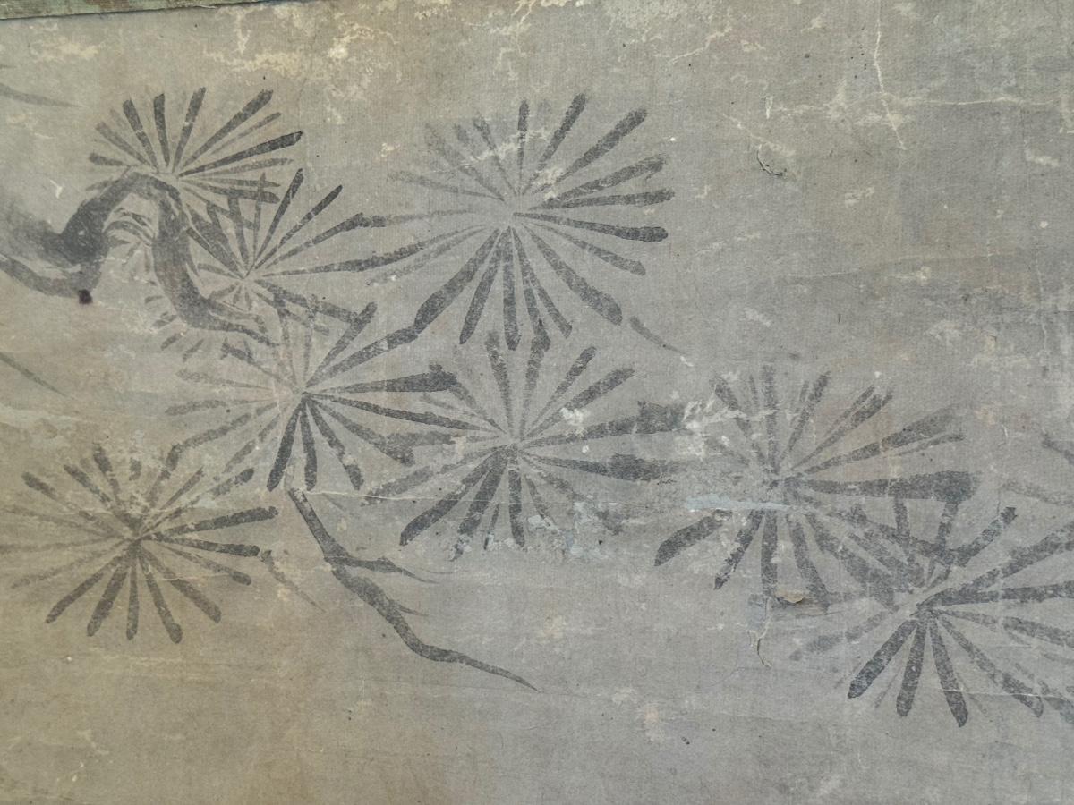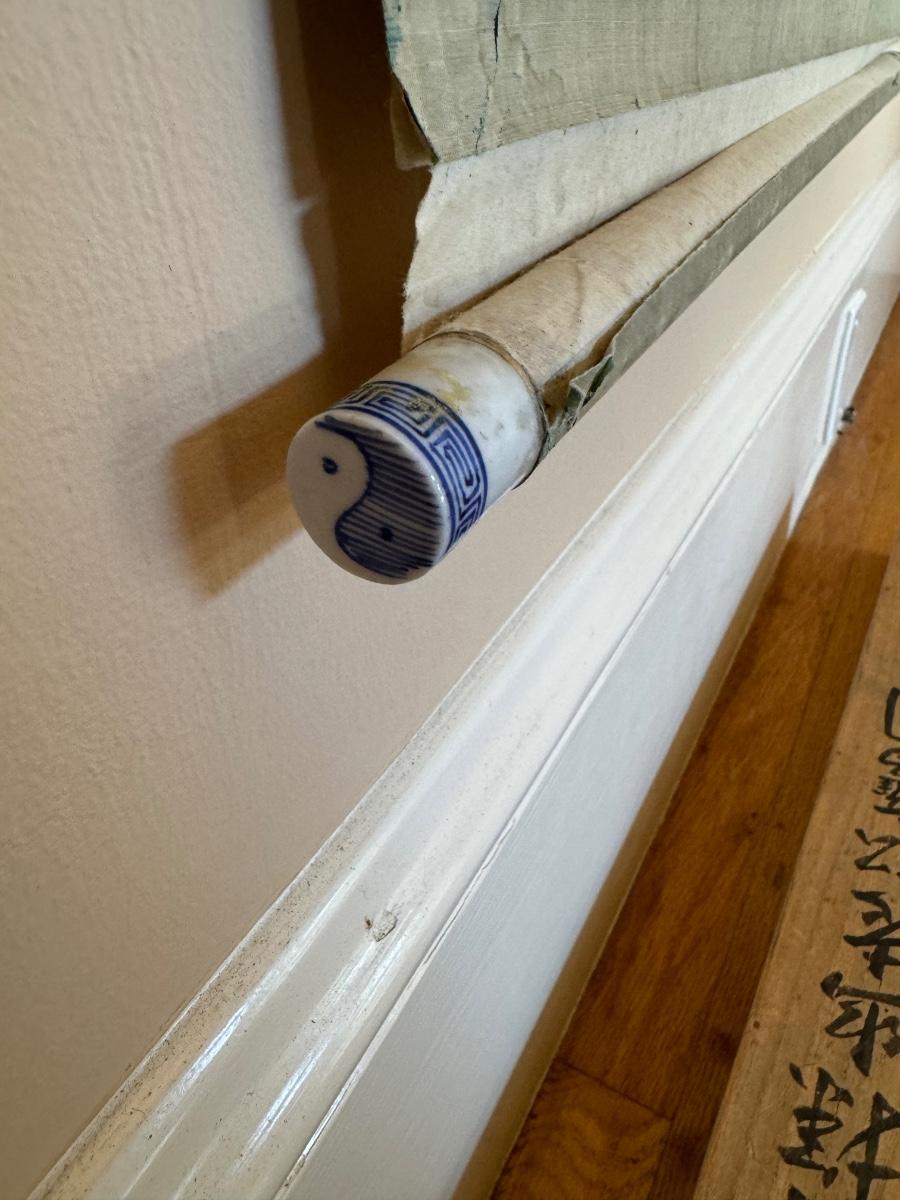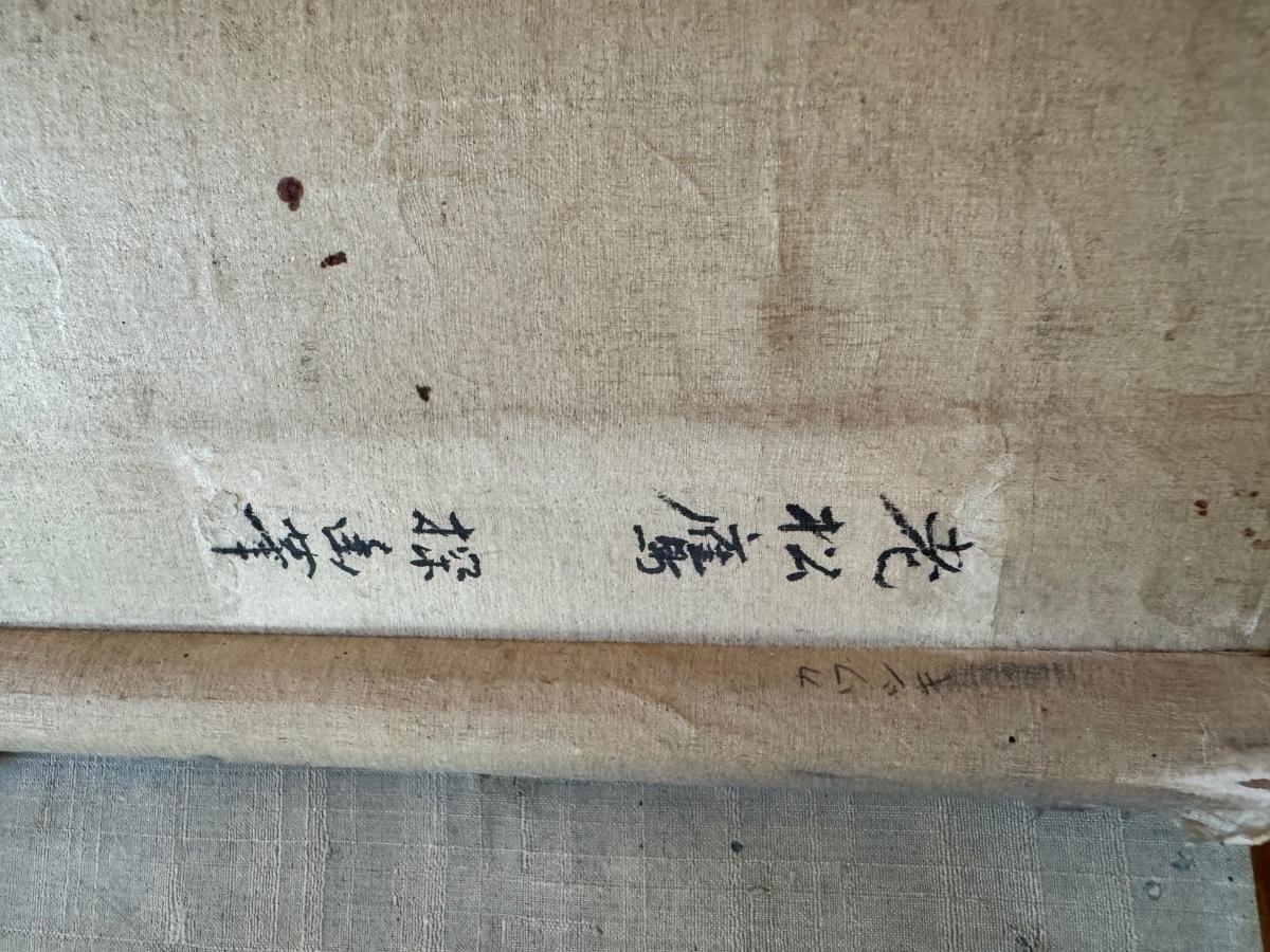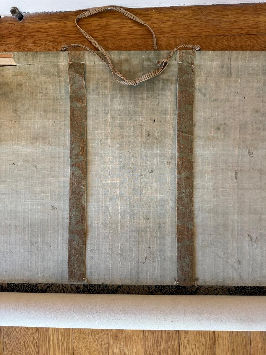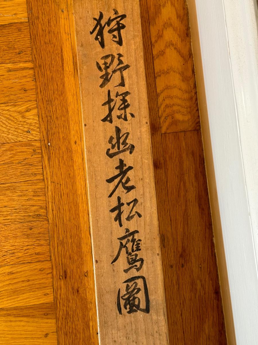 Antique Asian scroll, Hawk/Eagle wood box, 70” T x 21” W