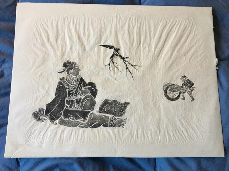 Antique Asian Temple Rubbing Art on Rice Paper 16 x 12