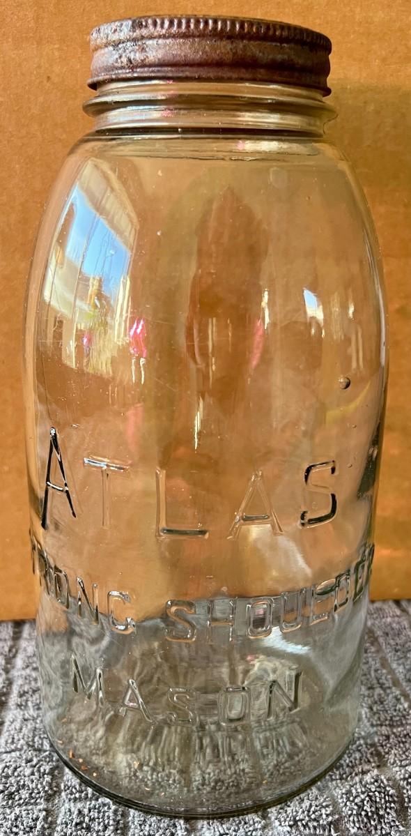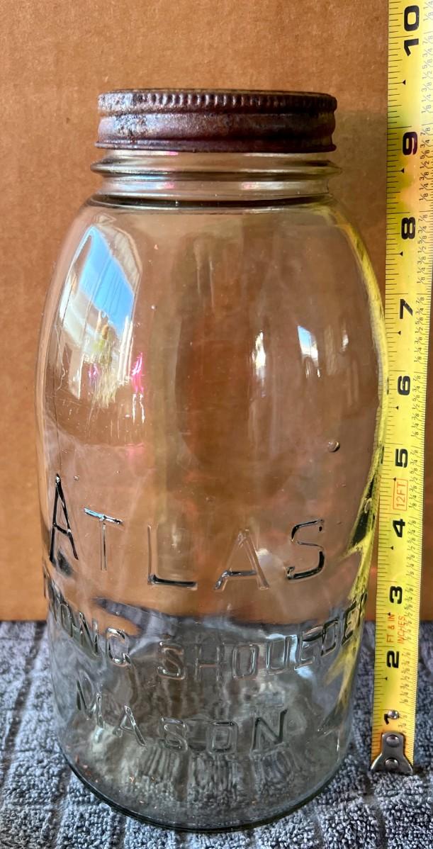 Antique Atlas Strong Shoulder 64oz Ounce Clear Glass Mason Jar 9.5" Inches