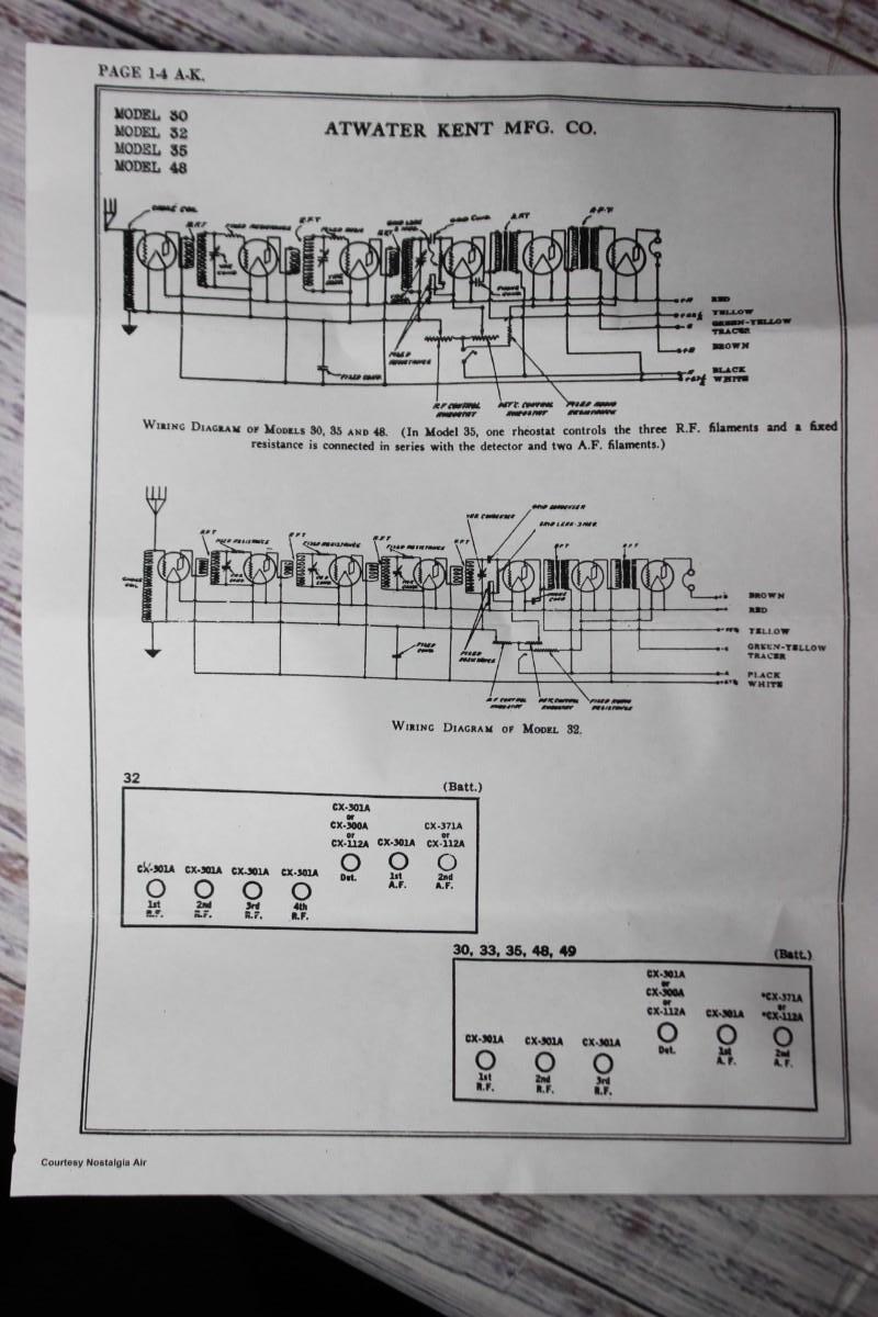 Antique Atwater Kent Model 48 Radio Broadcast Receiver, there are no significant cracks or chips to the body of the radio and is in good condition. The radio comes with tubes inside, but has not been tested. This unit requires an external speaker, check pictures for more details and for sizing. Also comes with schematics of the radio.