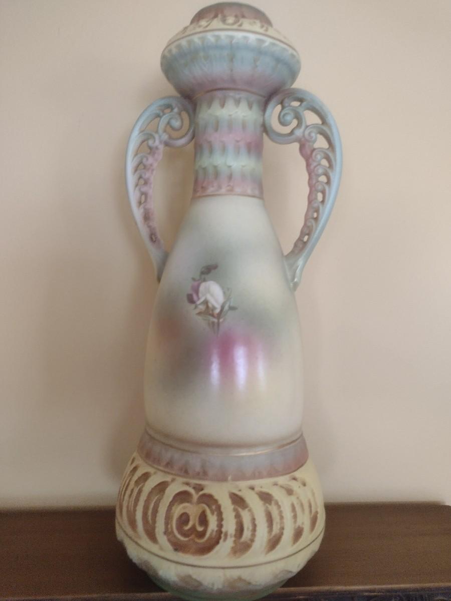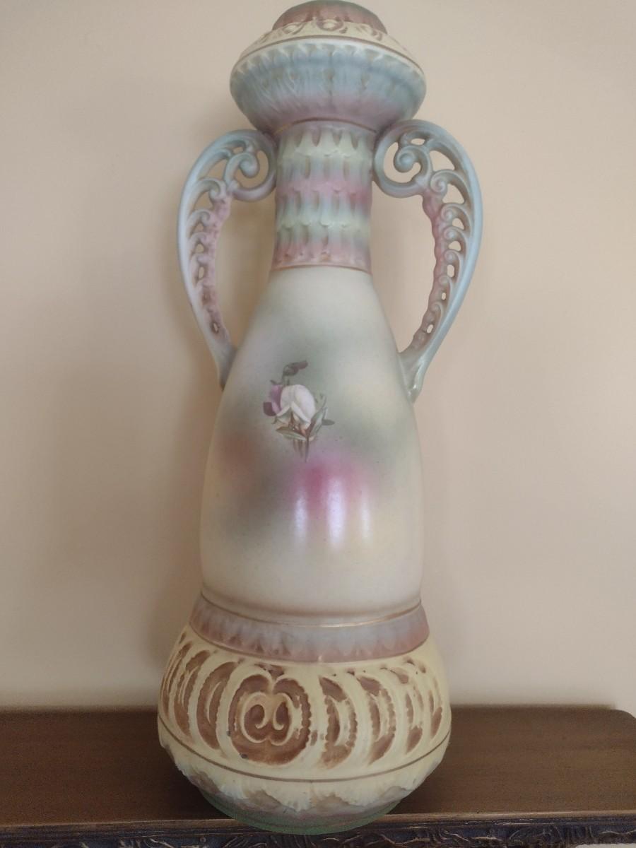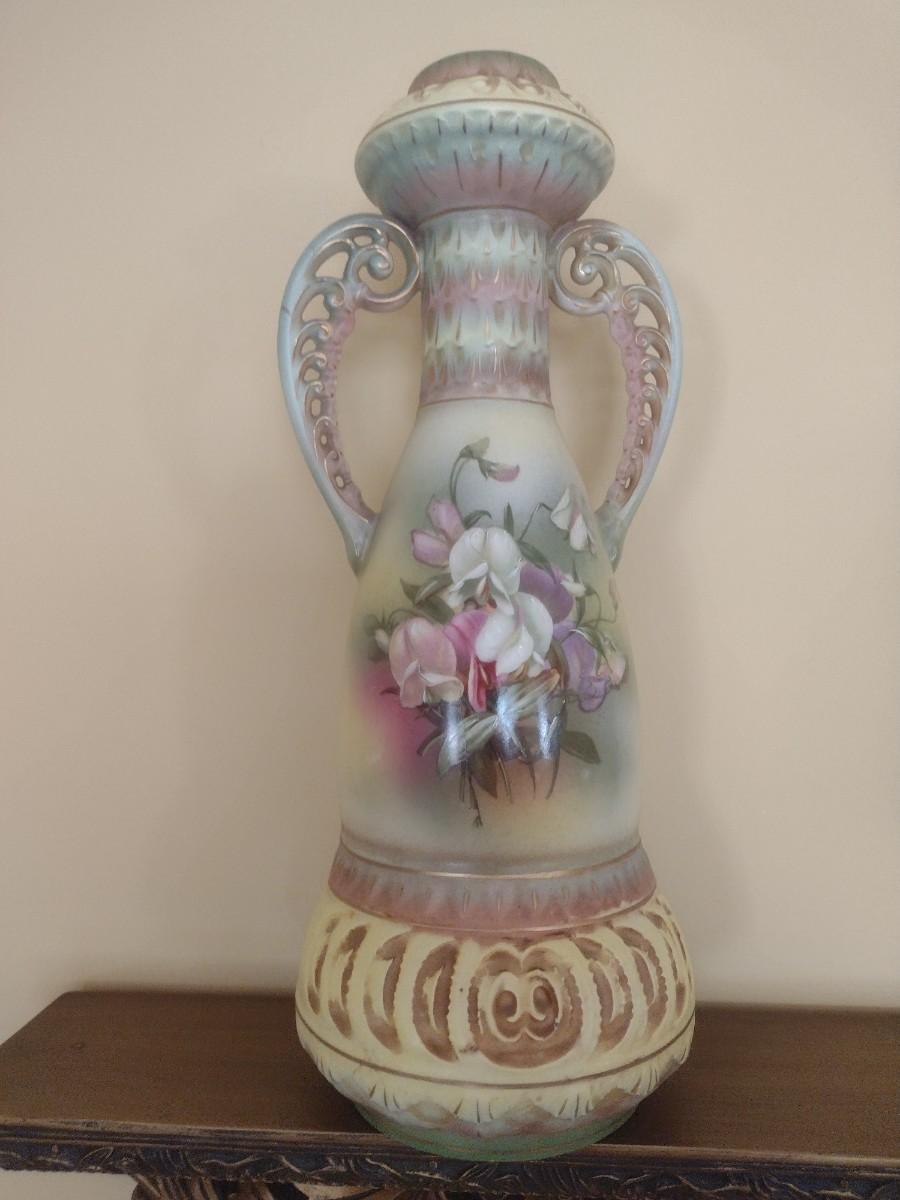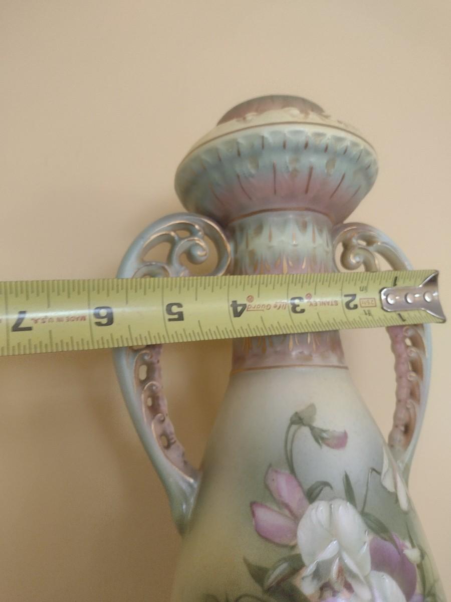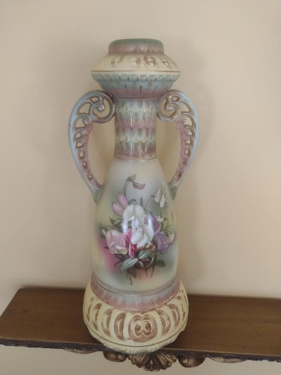 Antique Austrian Hand Painted Vase with Pierced Handles