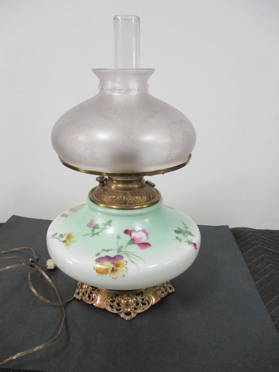 Antique B & H Oil Converted To Electric Lamp W/ Shade