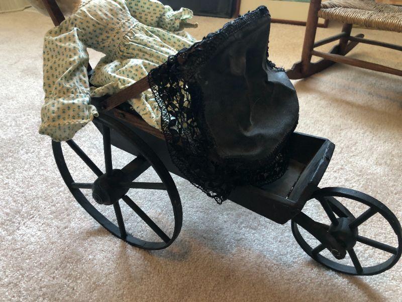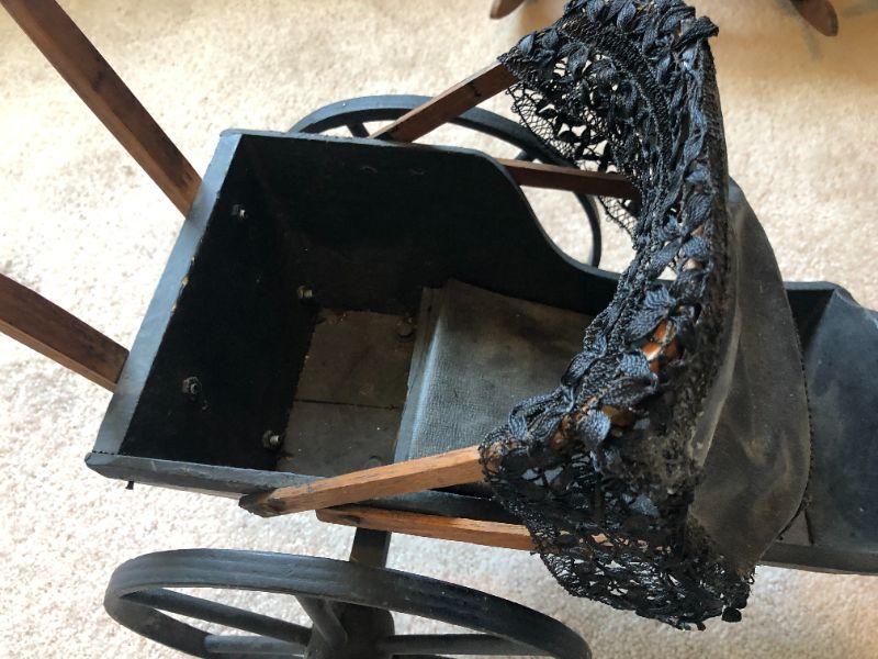 Antique Baby Doll and Carriage with Black Victorian Style Lace
