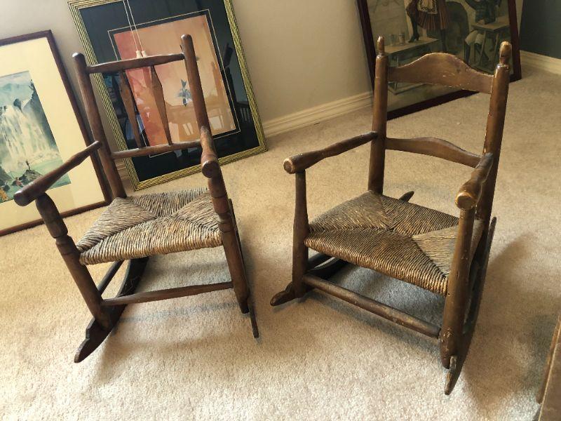 Antique Baby Dolls Basinet Cradle and Rocking Chairs