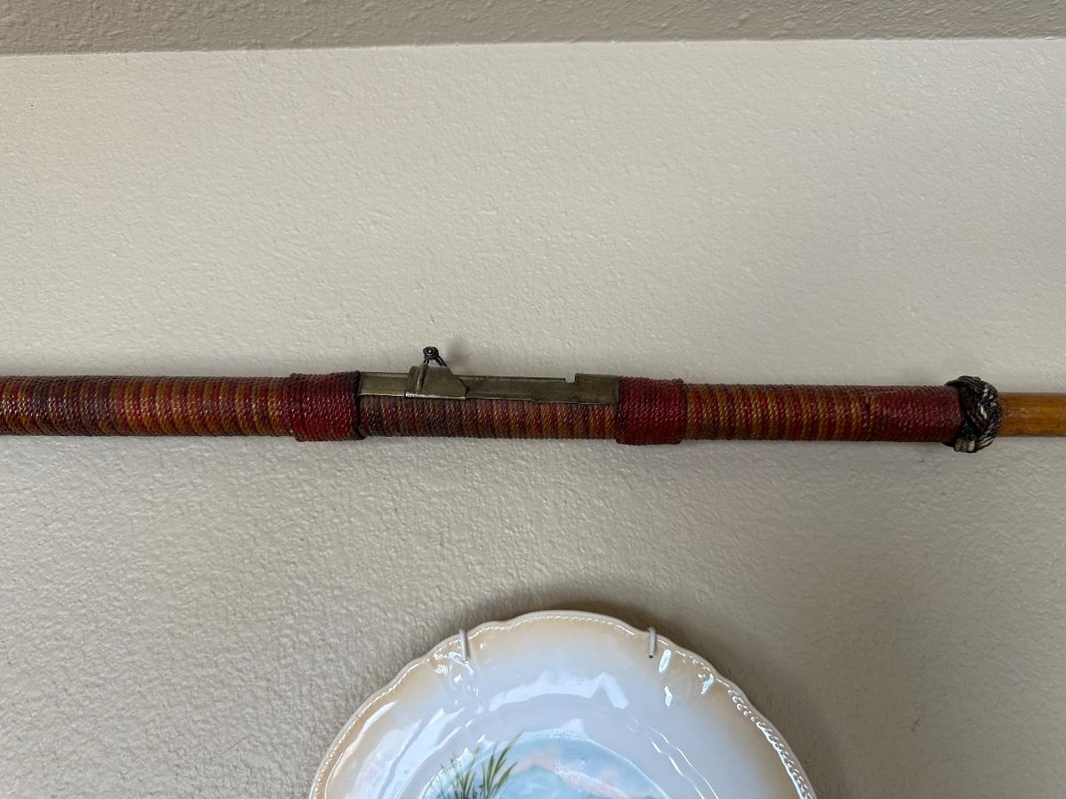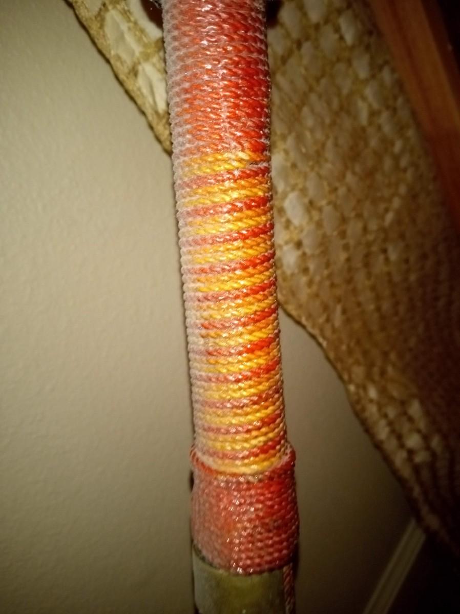 .THE HANDLE IS WRAPPED WITH A BRAIDED CORD