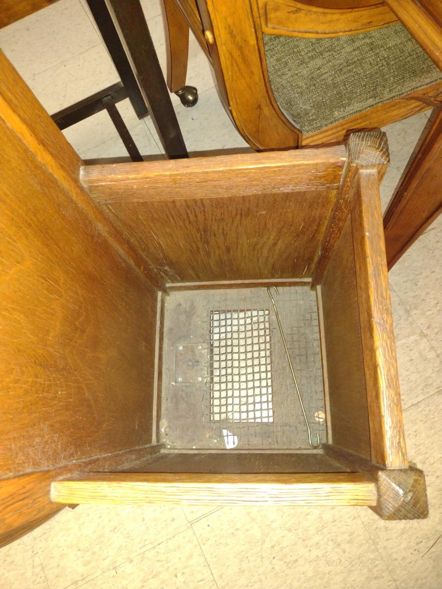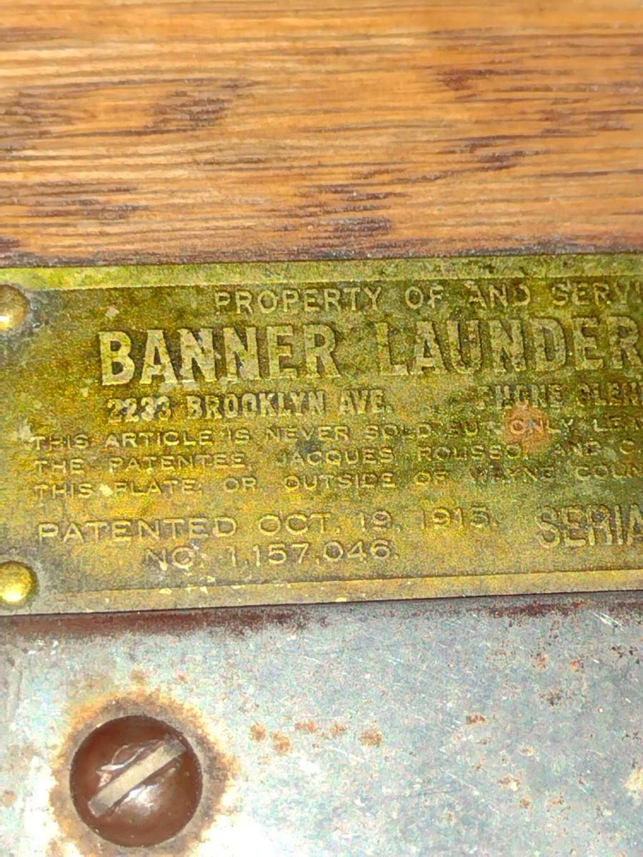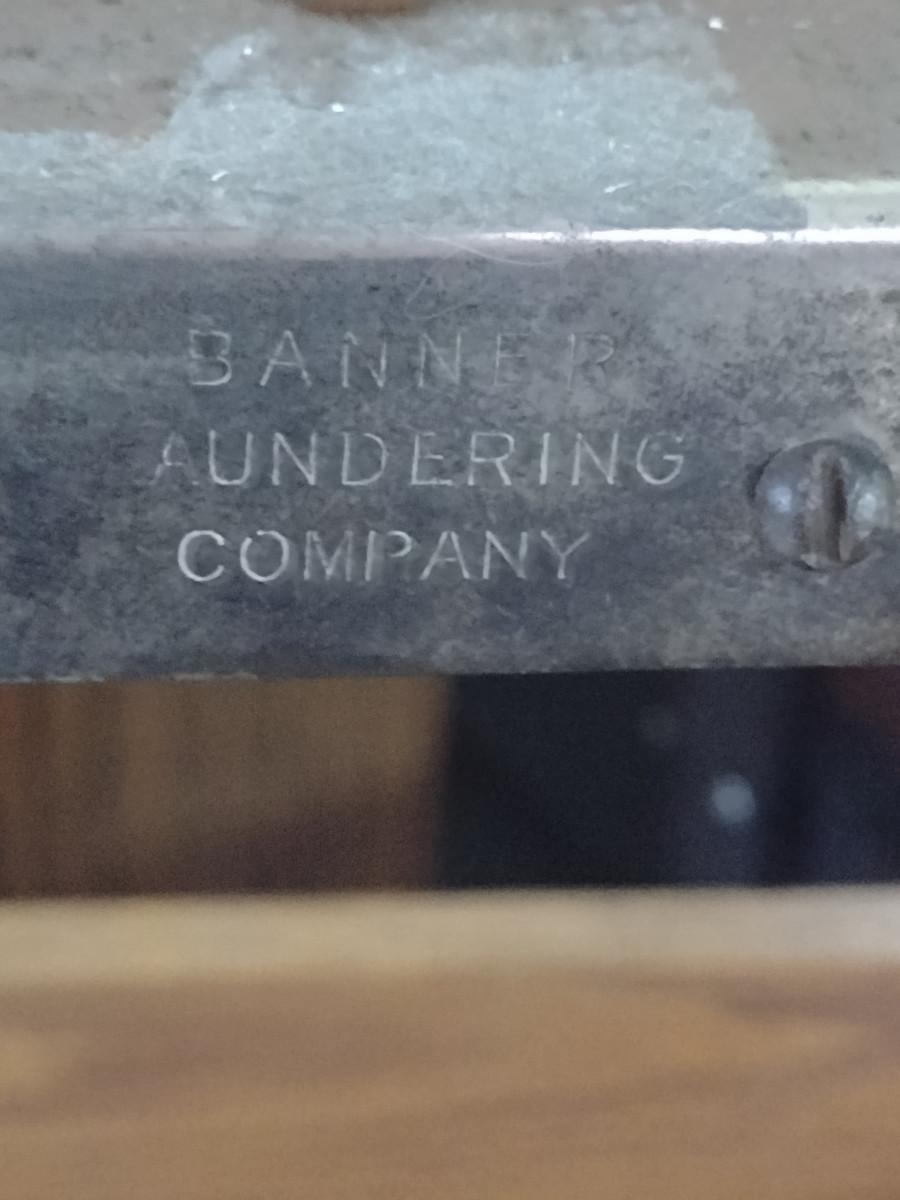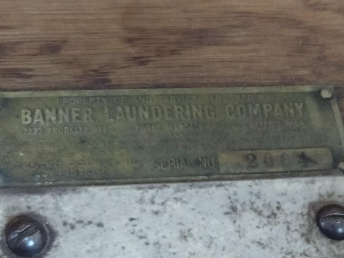 Antique Banner Laundering Company Oak Towel Rack with Laundry Bin. Item was from old Tigers Stadium (Detroit, Michigan) locker room per owner.