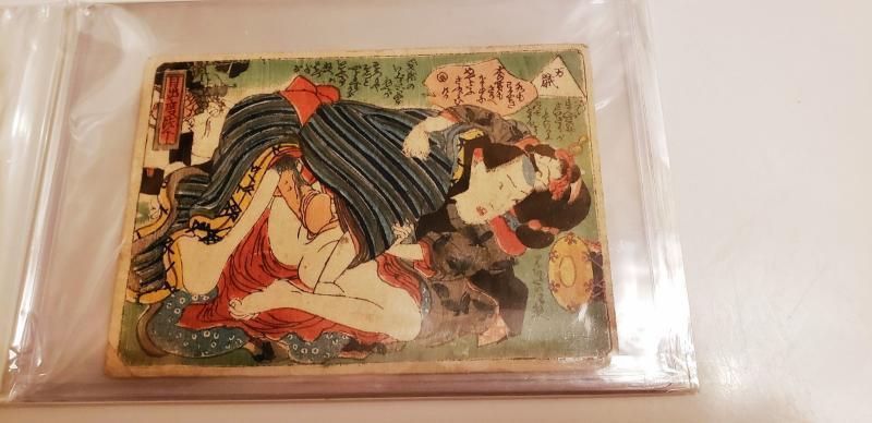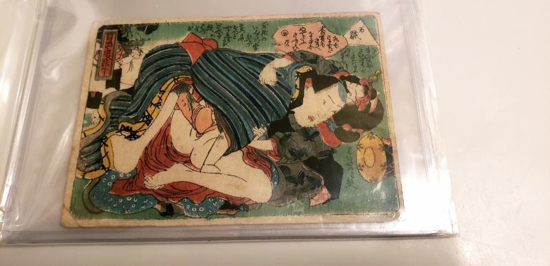 An Original Antique Erotic Woodblock Print Shunga -Banzai