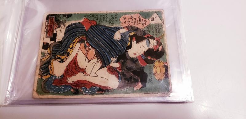 An Original Antique Erotic Woodblock Print Shunga -Banzai