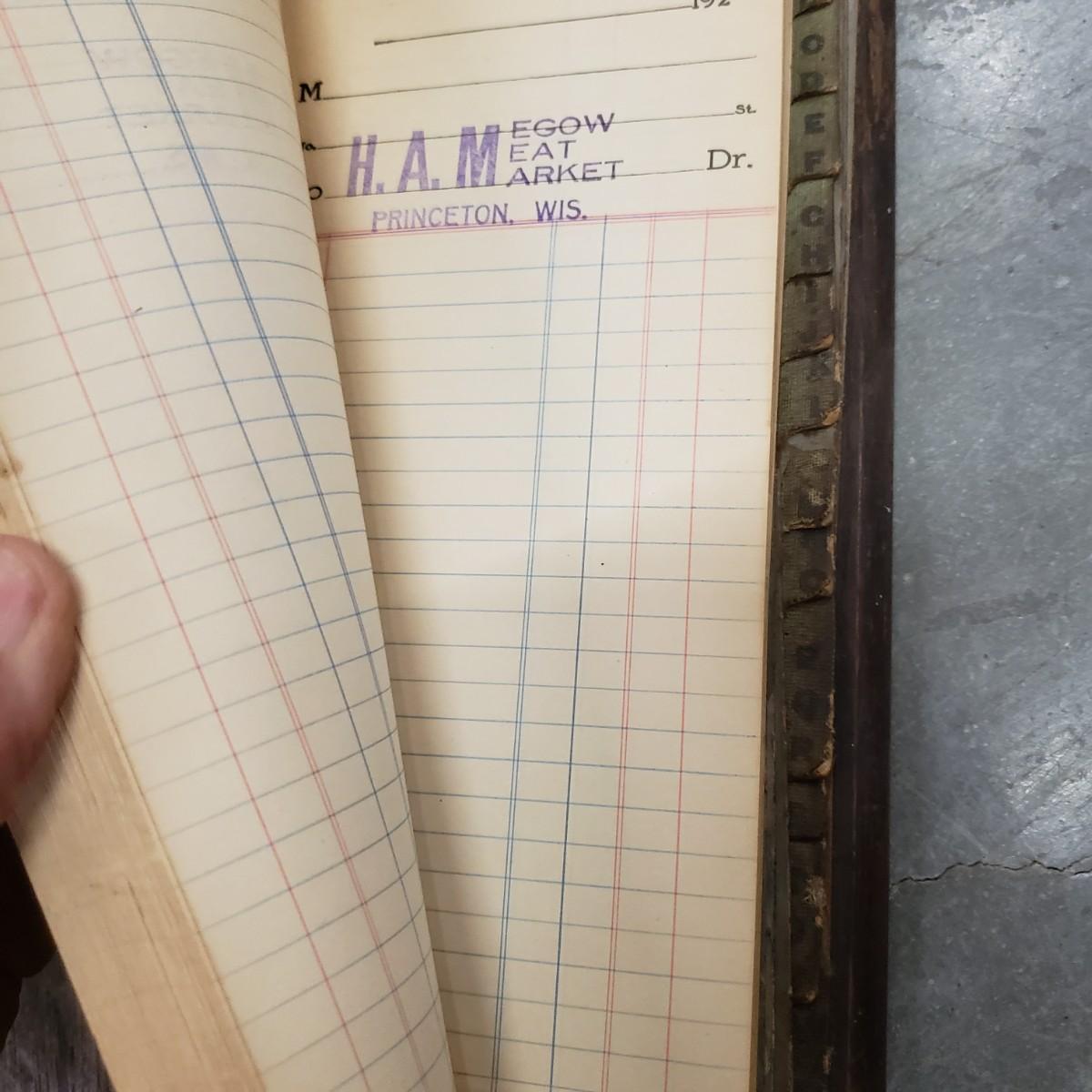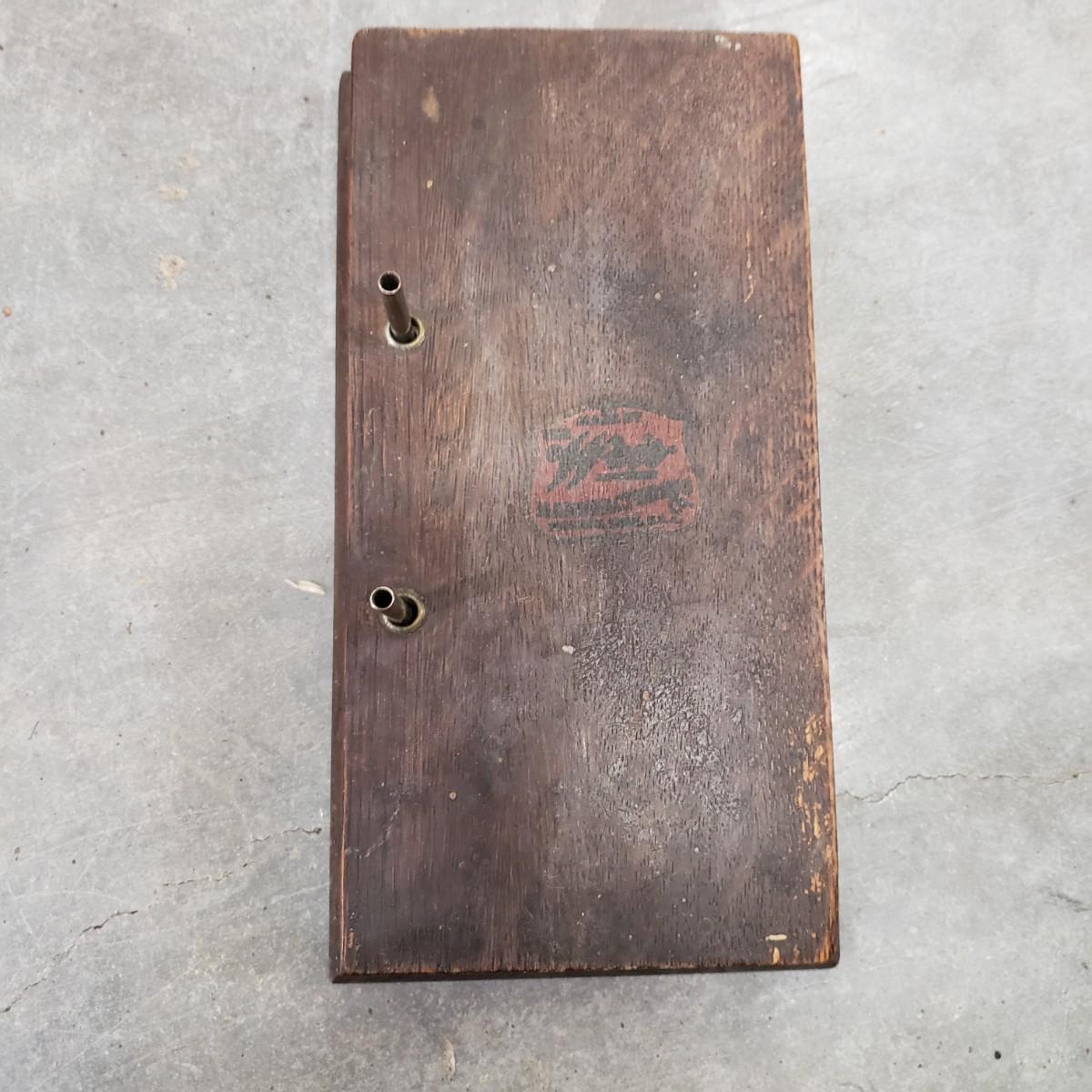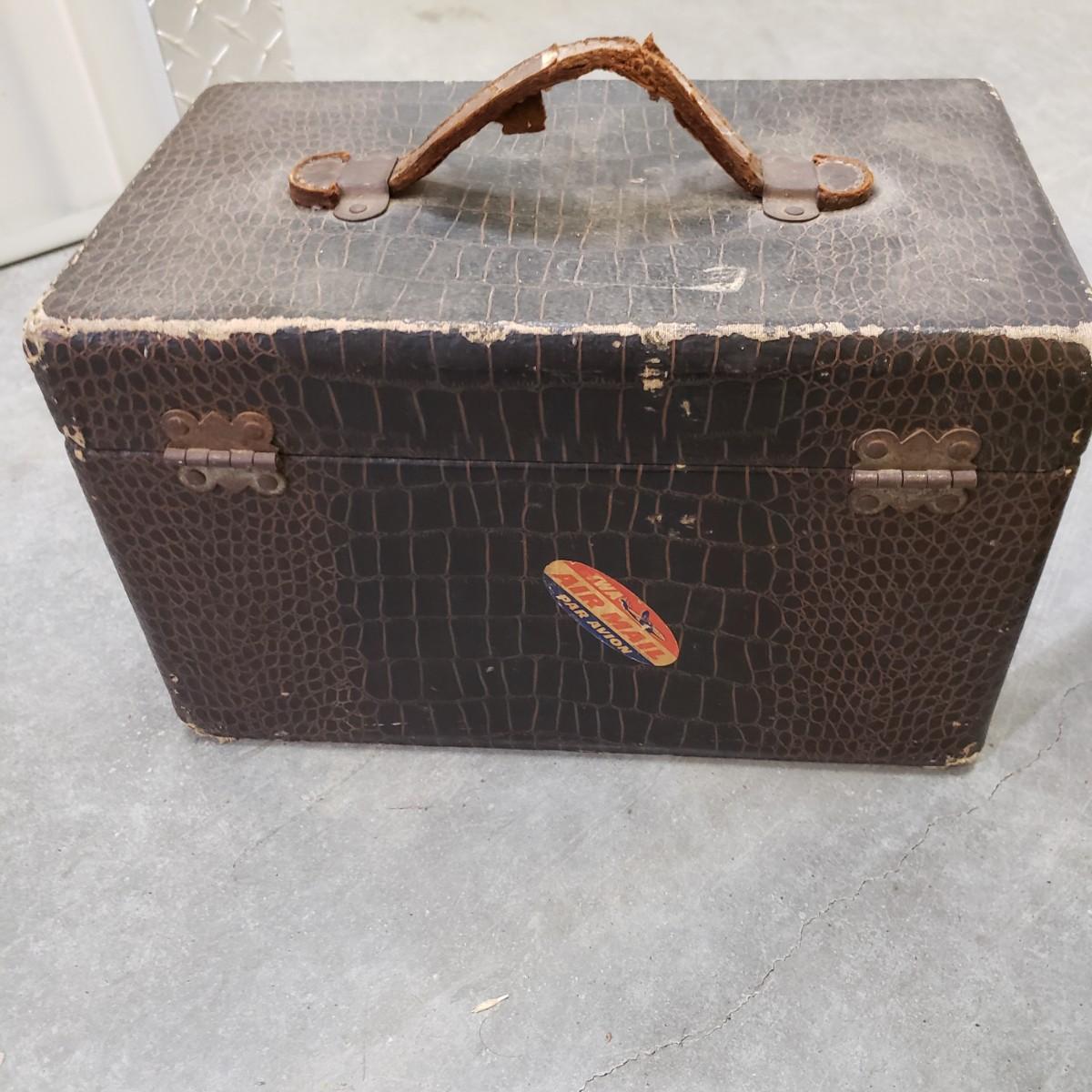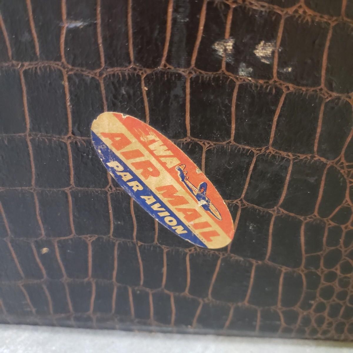 This seven piece (possibly antique) lot features a wooden basket measuring 13" x 22" x 16"H. The alligator wooden box has a leather handle. The sweet grass basket has leather trim. Some of the trim is pulled away from the basket, see picture. The ledger from Weiss still has paper and alphabetical tabs.