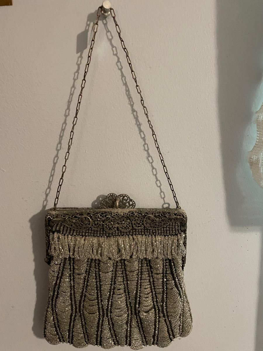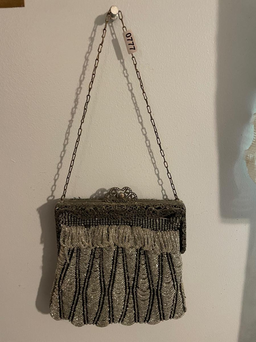 Antique beaded art/silver frame