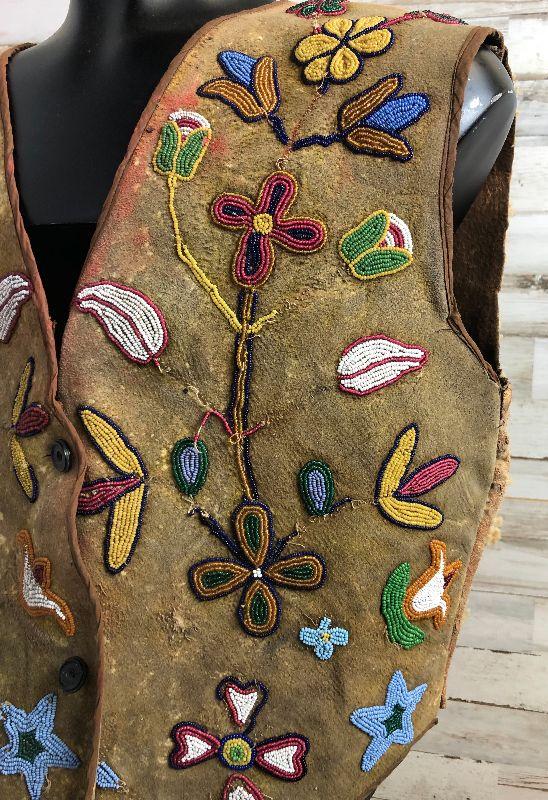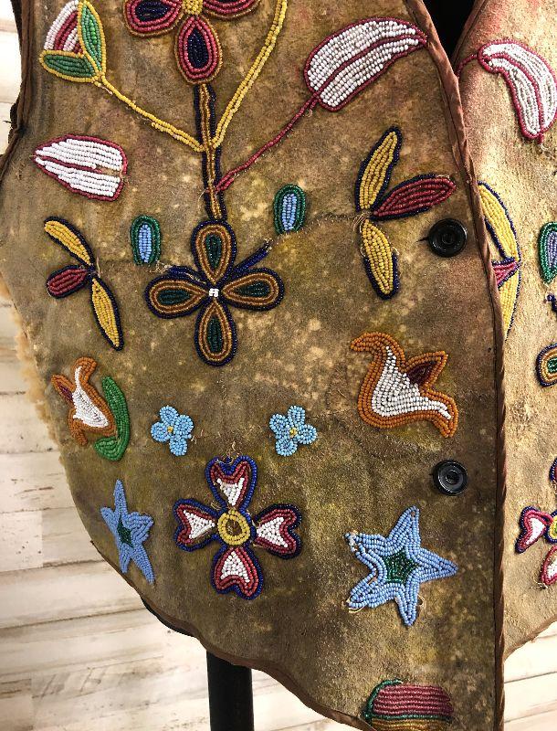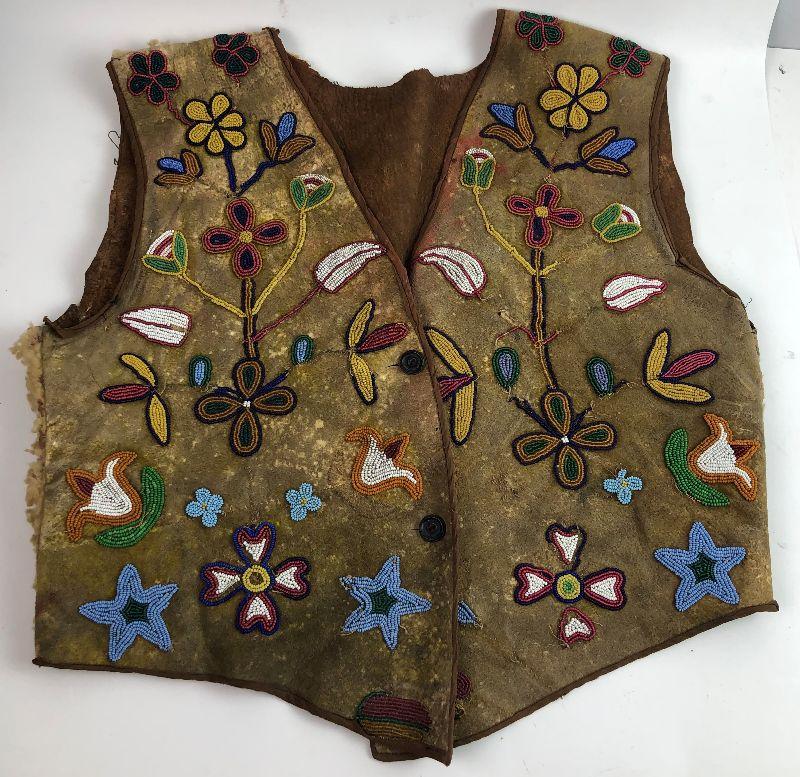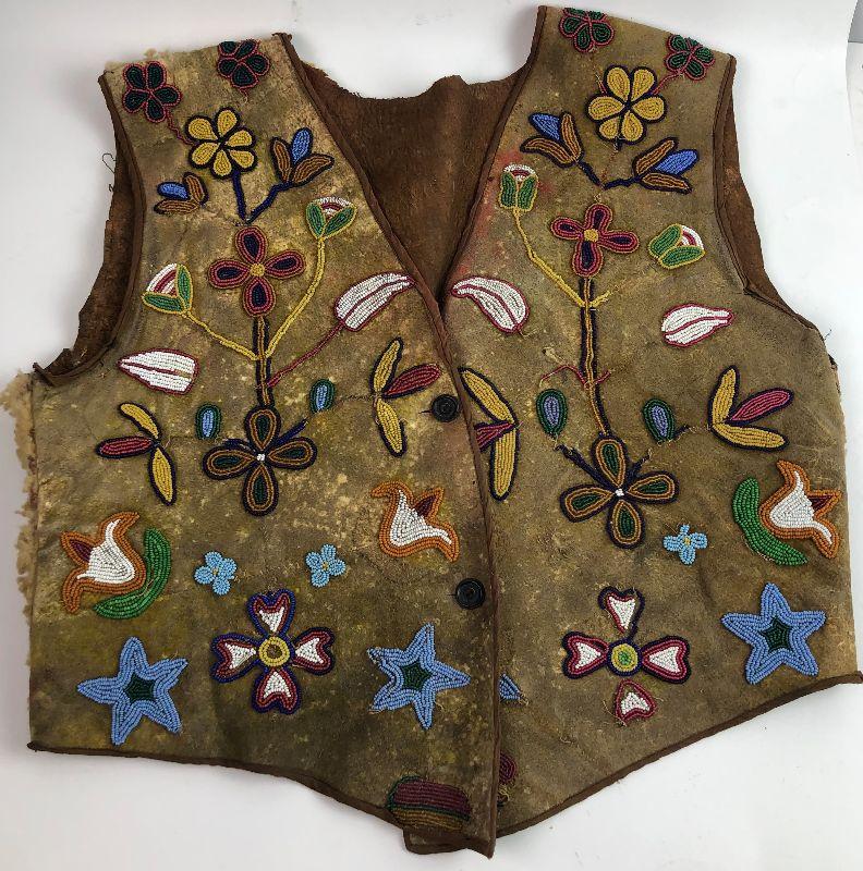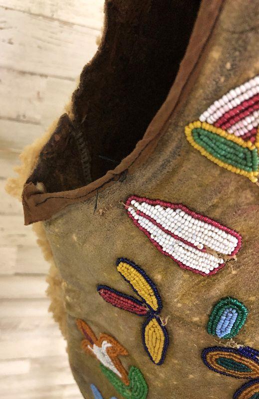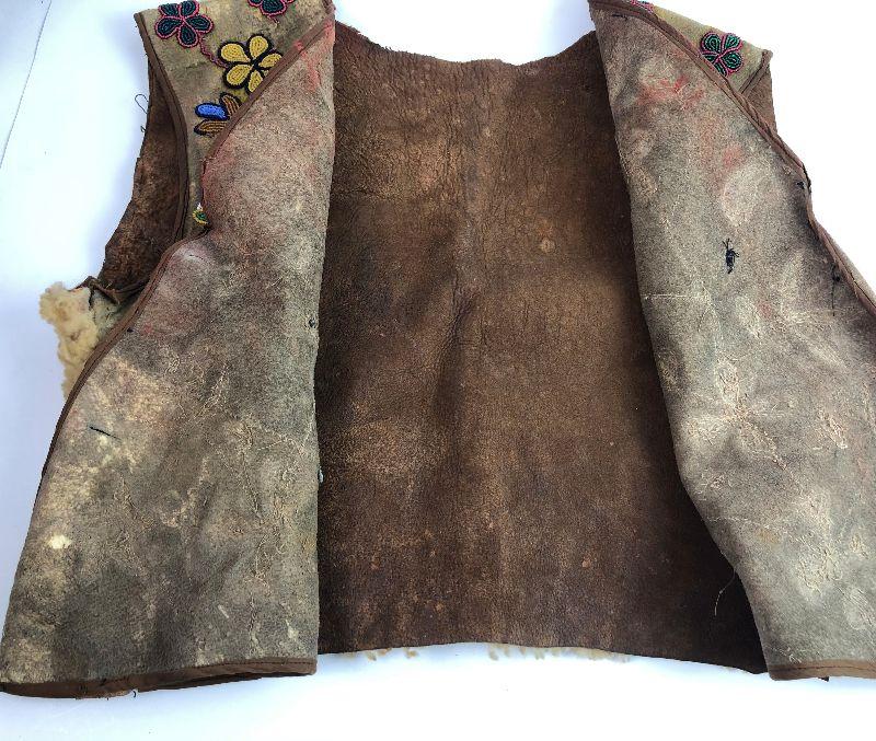 Antique Beaded Vest Native American C.1900 Sheep Leather Am. Southwest