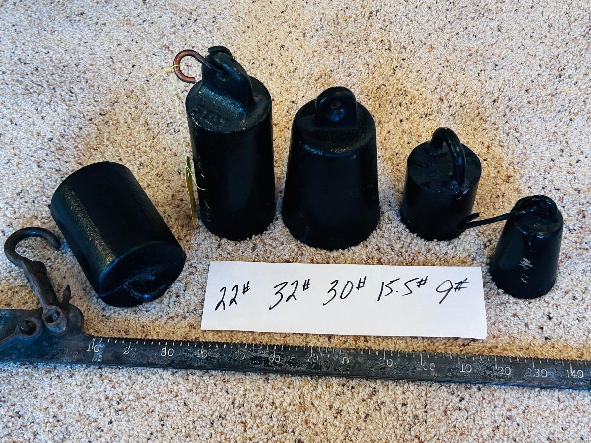 ANTIQUE BEAM HANGING BARN SCALE FOR COTTON OR TOBACCO WITH WEIGHTS
