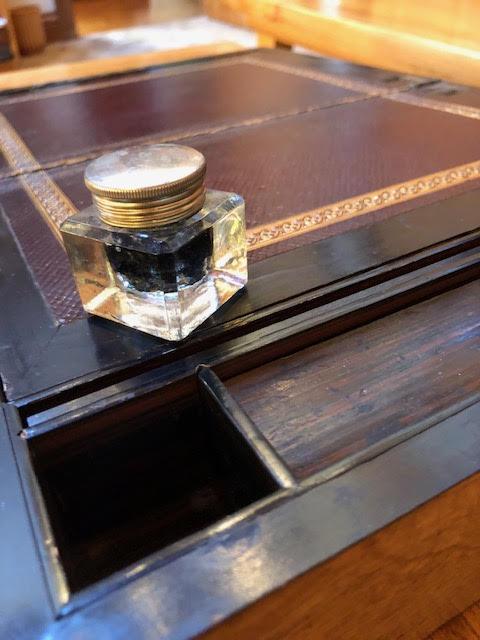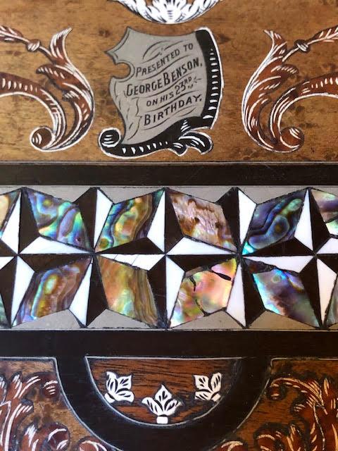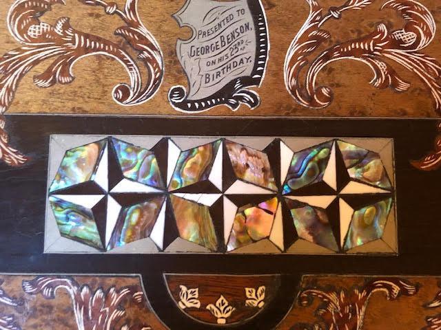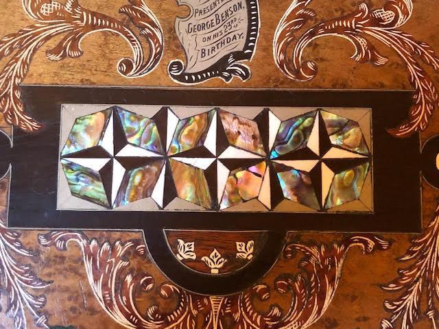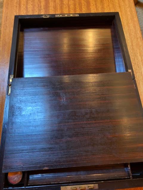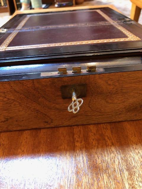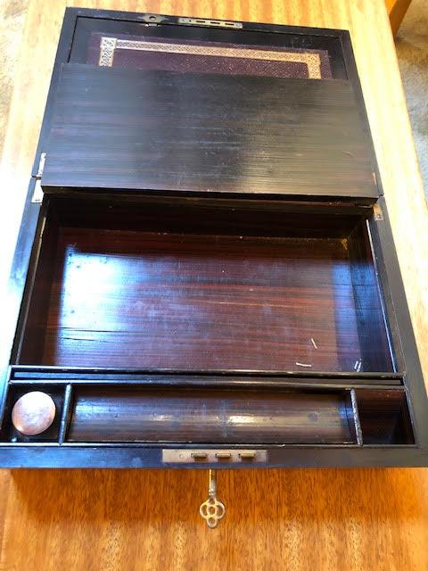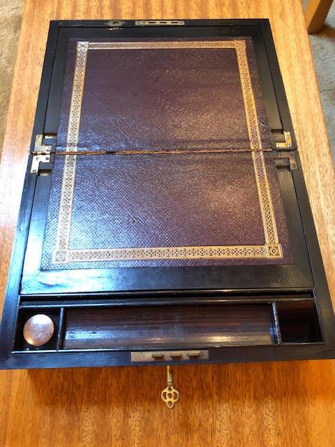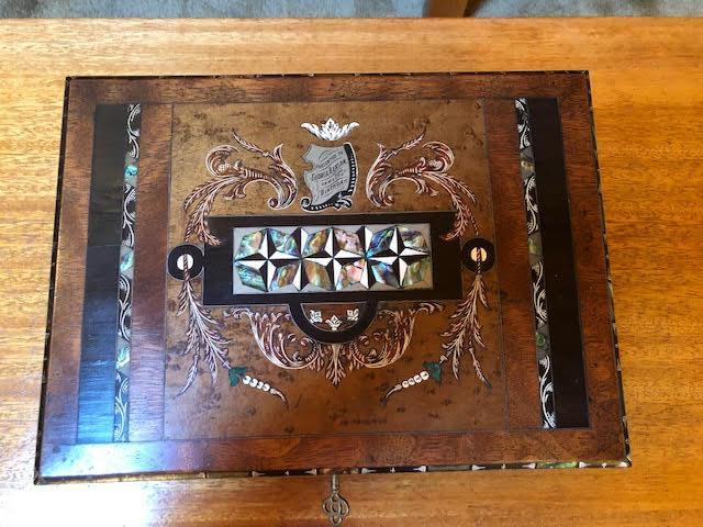 Antique Beautiful Wood & Mother of Pearl Inlay Portable Secretary Travelling Lap Writing Desk