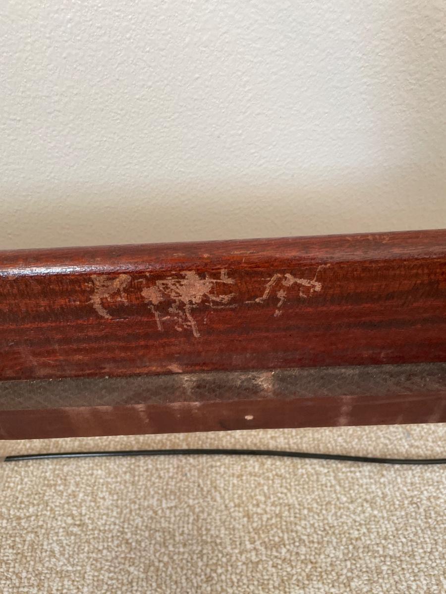 Over 100 years old and has some scratches on inside of frame.