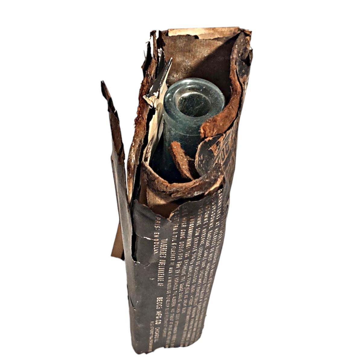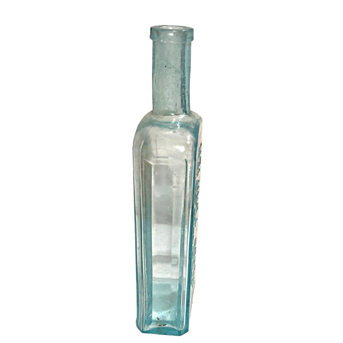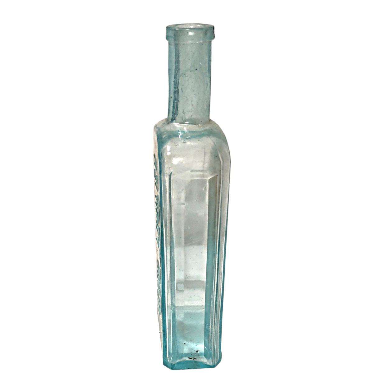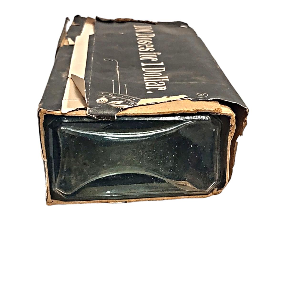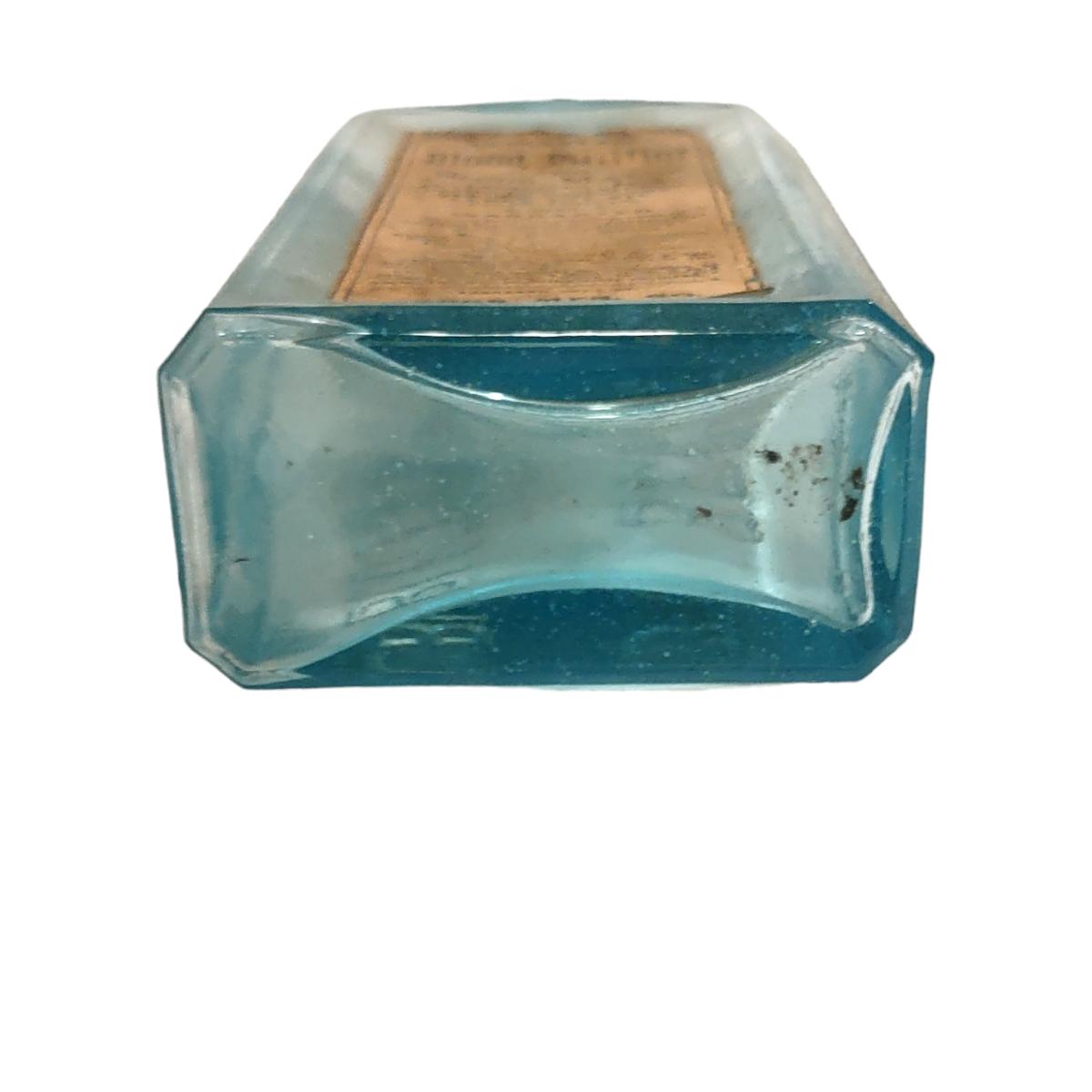 - Original Aqua Glass Cork Top Bottle w/ Original Label (Empty)