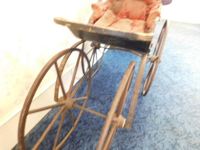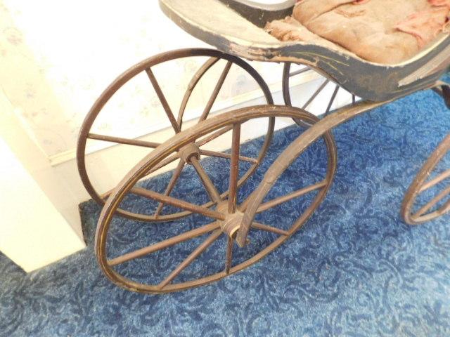 Antique Bent Wood Baby Buggy with Canopy needs reupholstered as shown