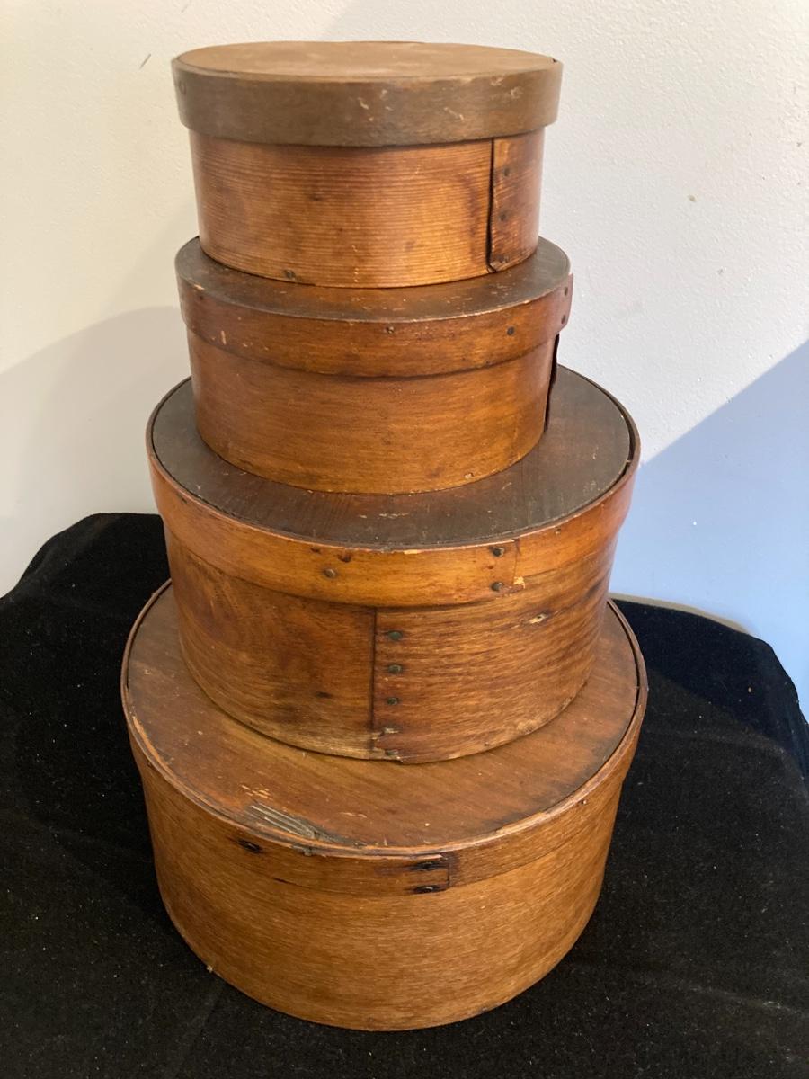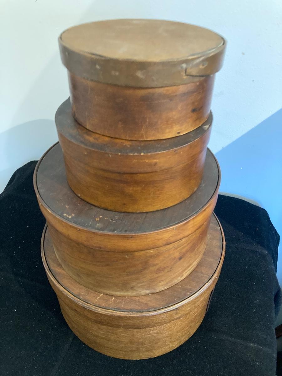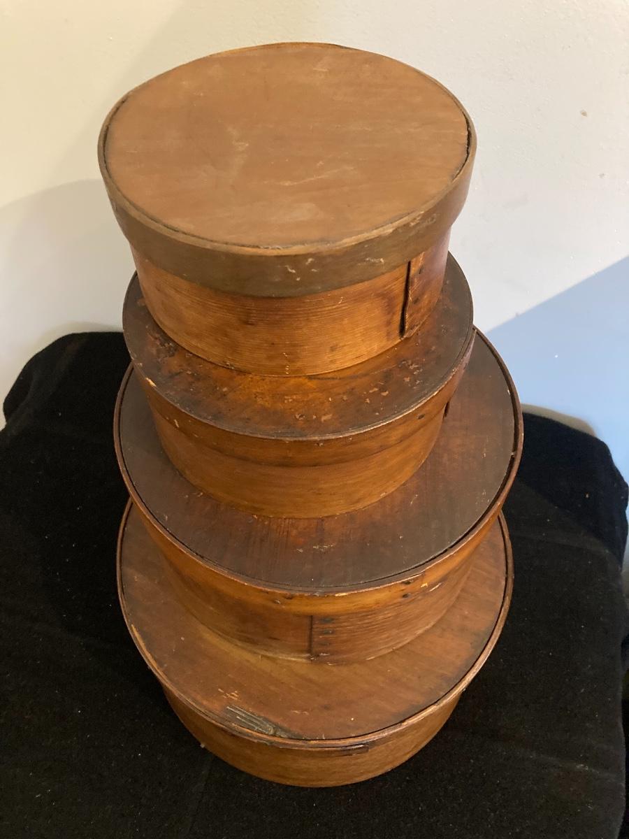 Antique Bent Wood Pantry Boxes Lot of 4 Graduated