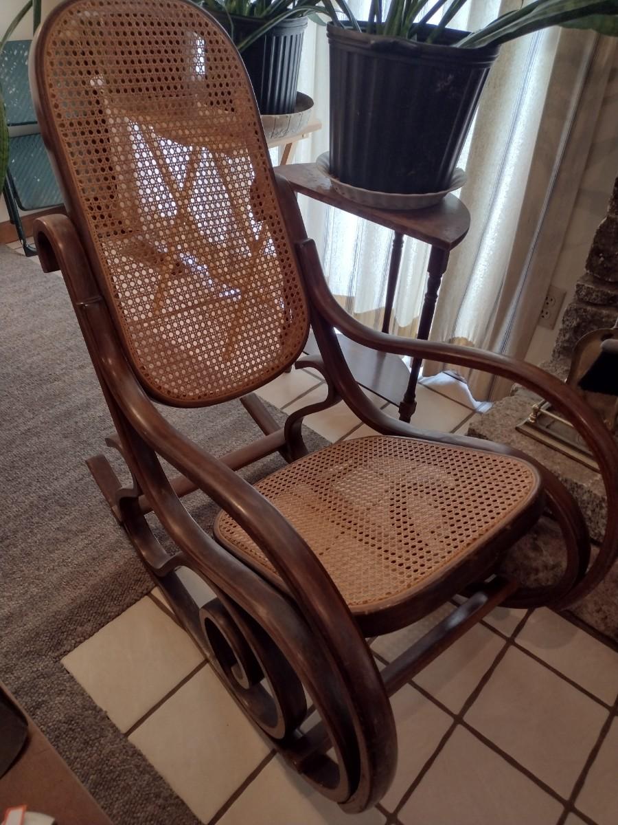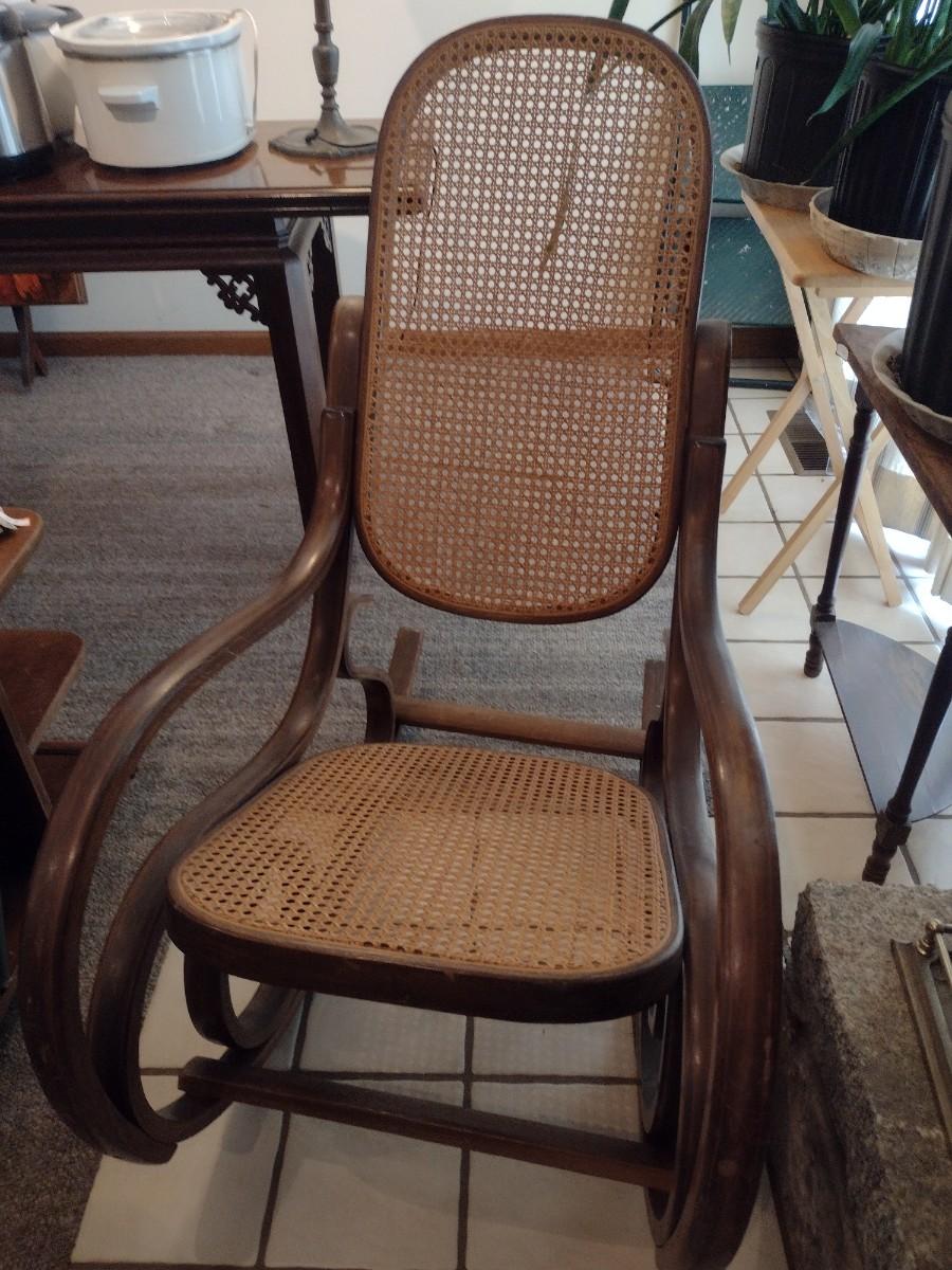 Antique Bent Wood Rocker with Cain Seat and Back