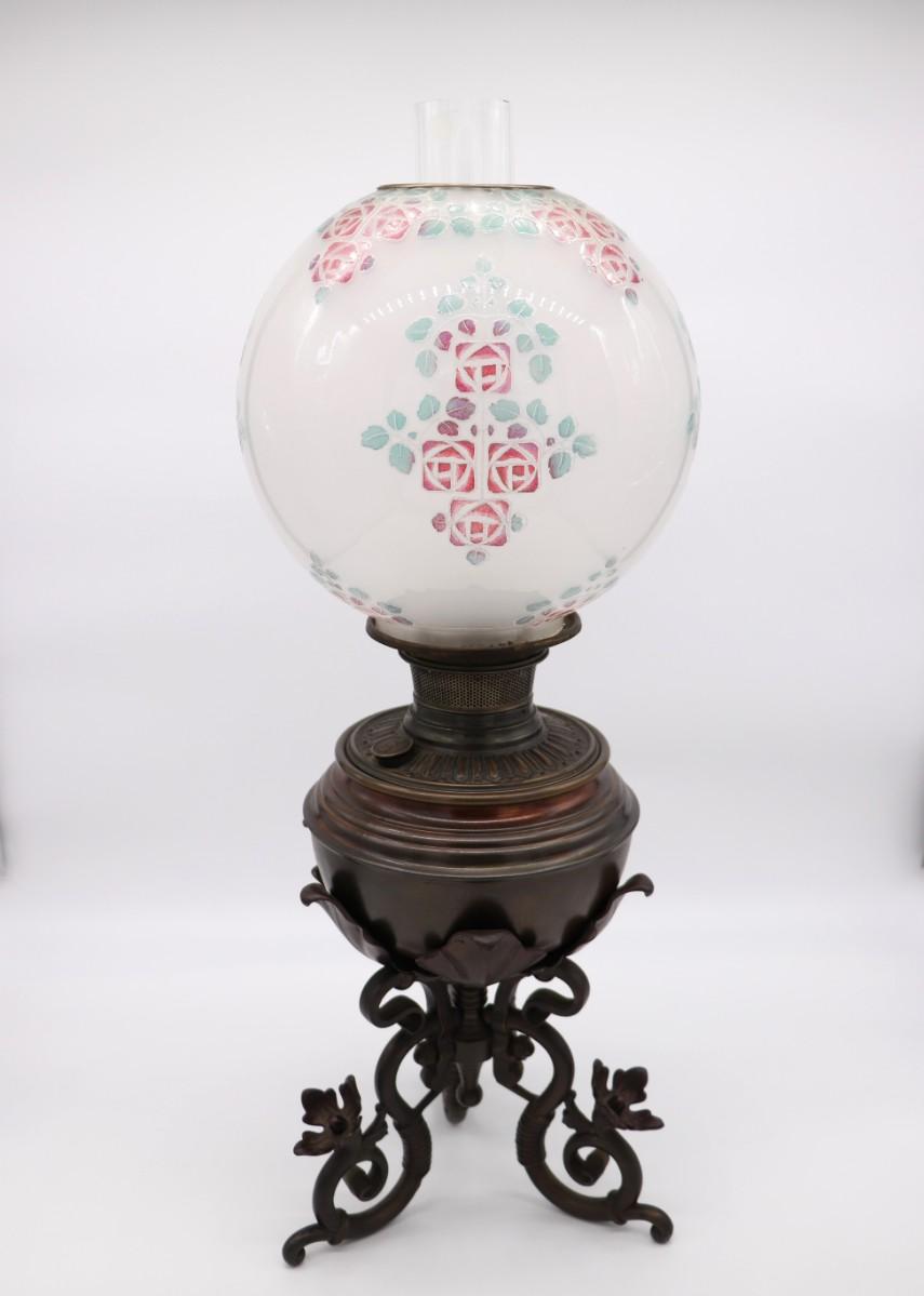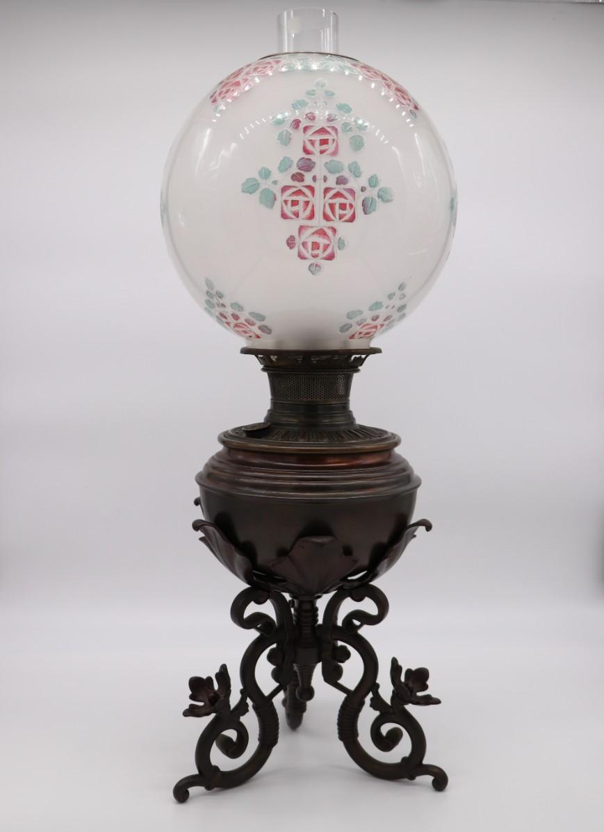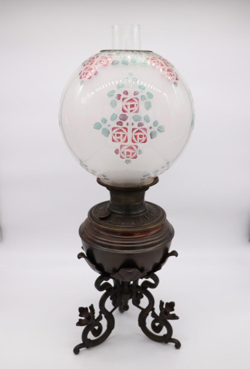 Antique B&H Globe Art Nouveau Floral Kerosene Lamp