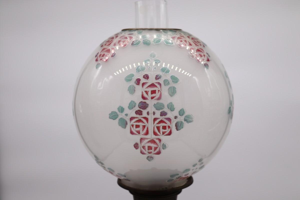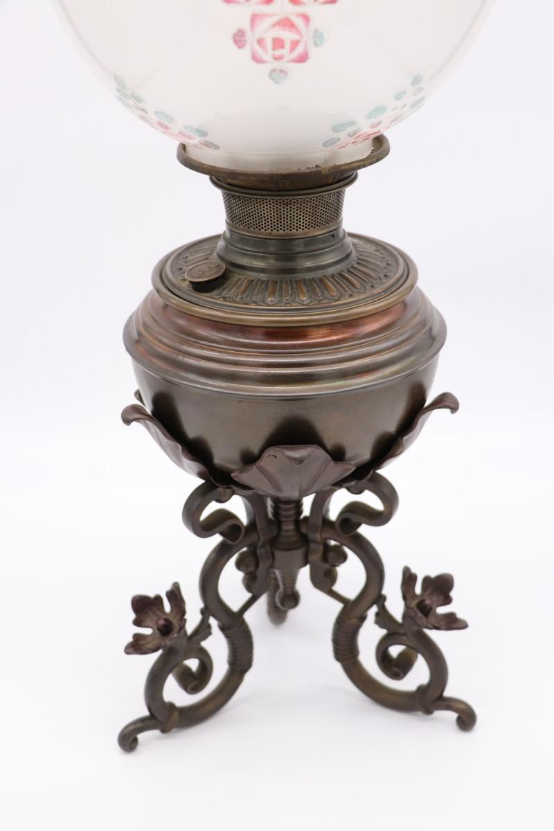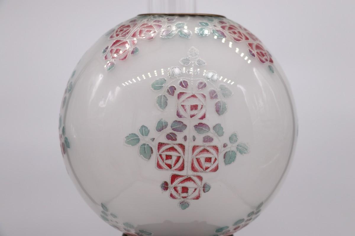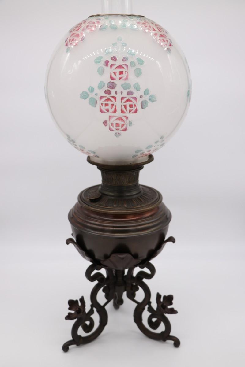 Antique B&H Globe Art Nouveau Floral Kerosene Lamp