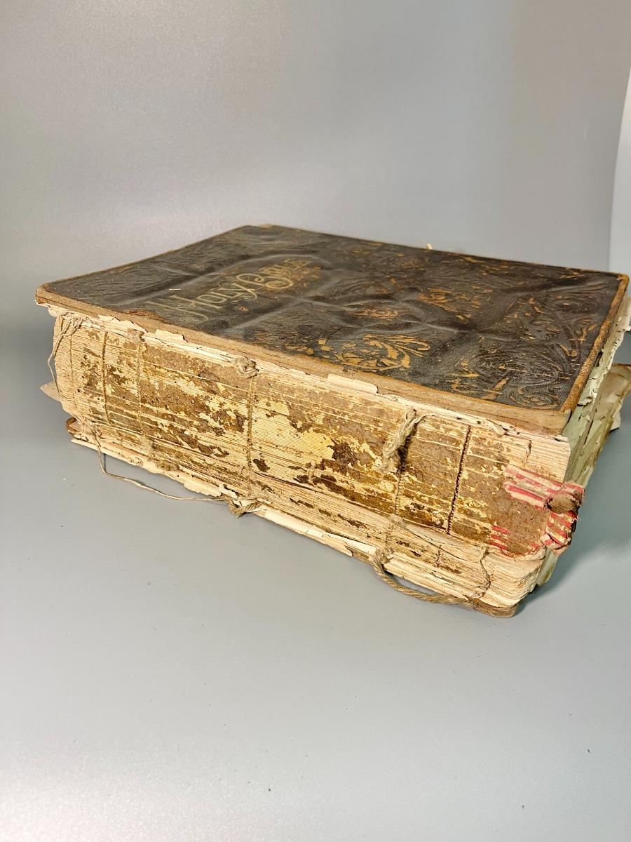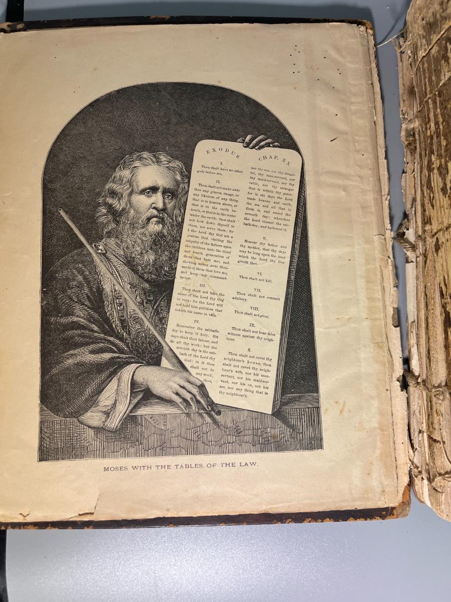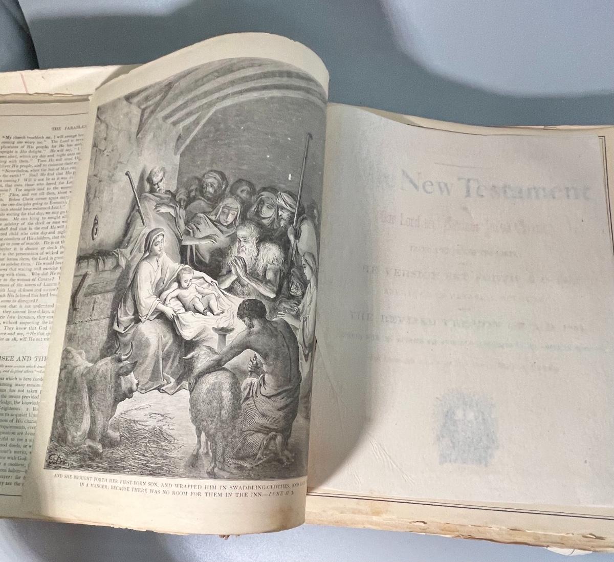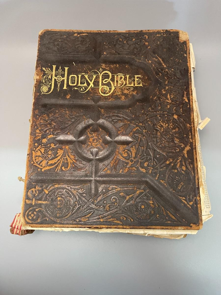 Circa 1800s Bible in rough shape. It appears that pages are there and in order. Binding is poor. Some pages are still bound while some are not. Despite condition the age of the Bible certainly makes it a treasure!!