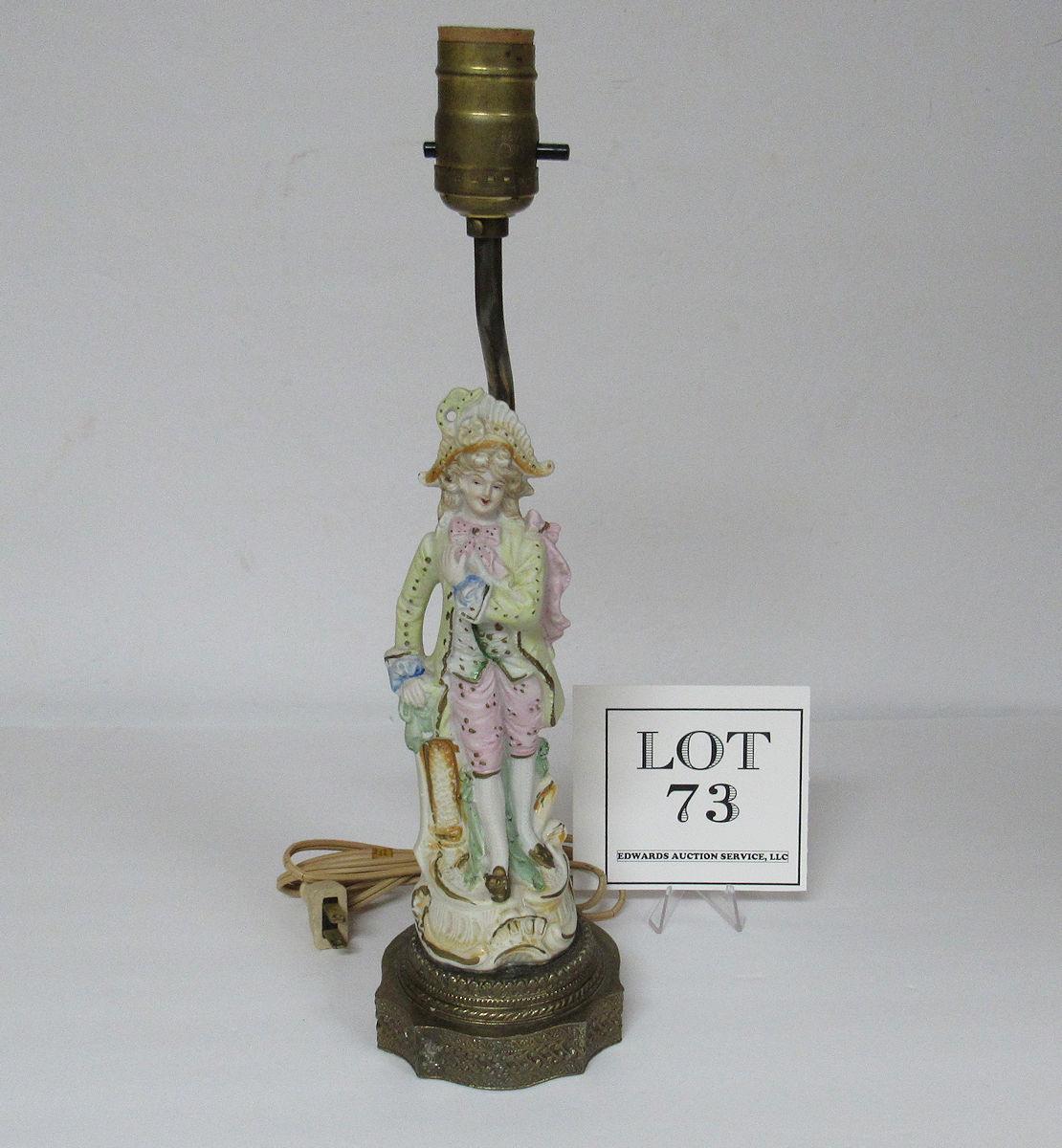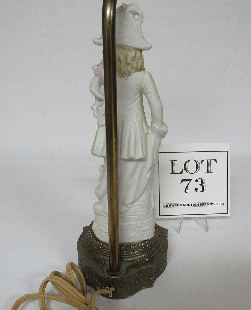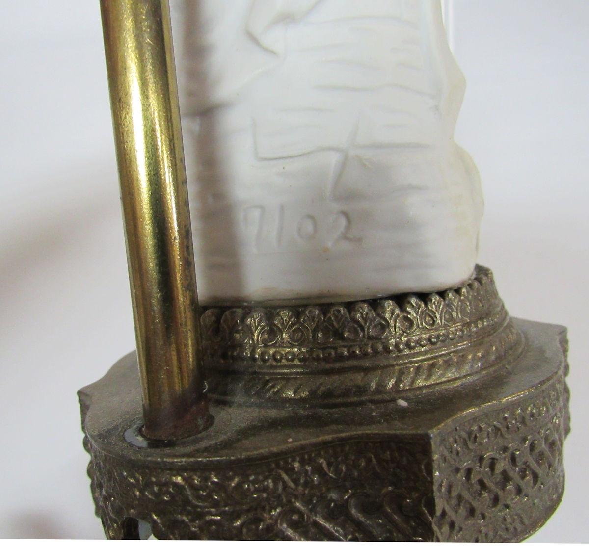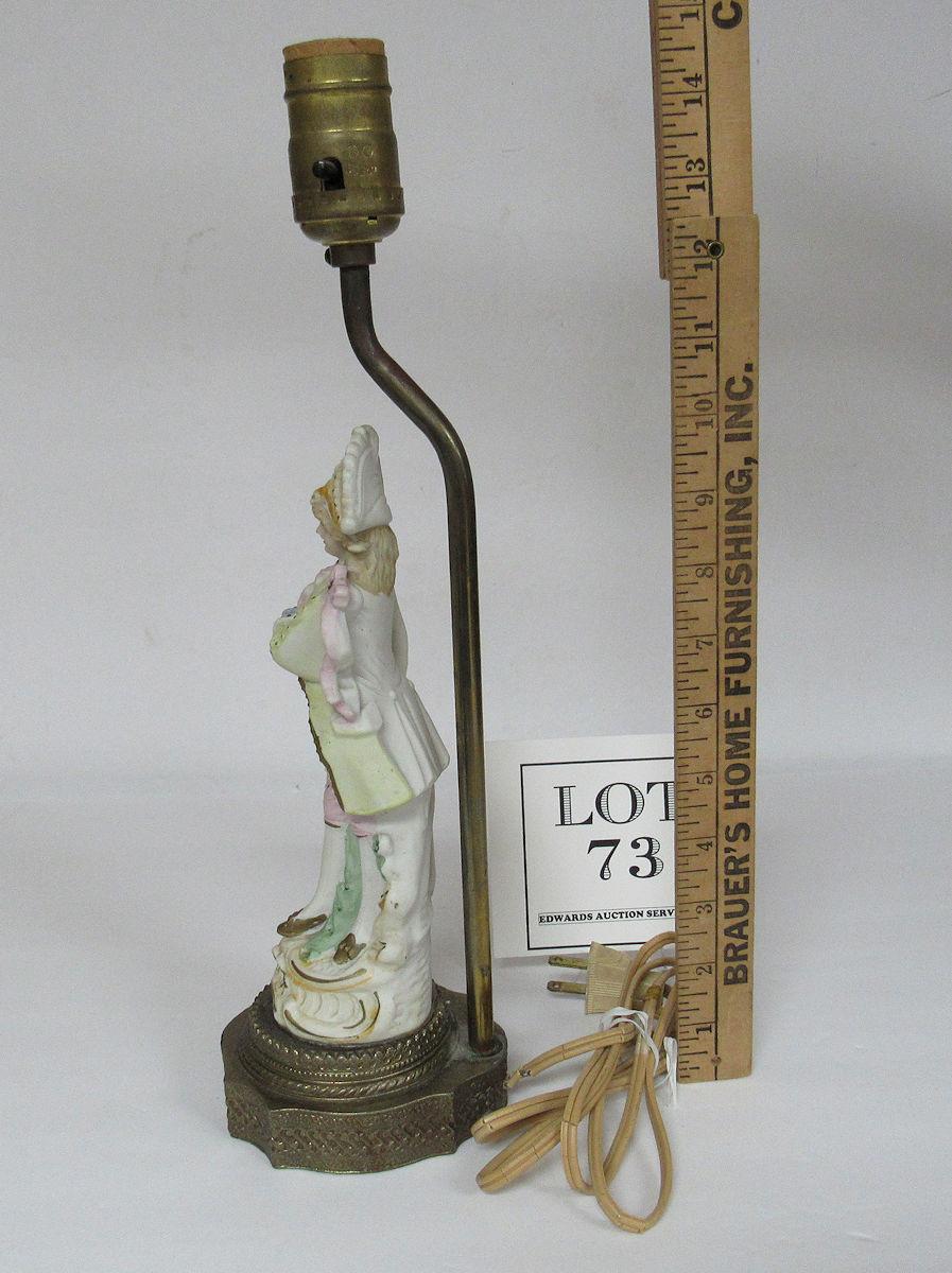 Antique Bisque Figural Lamp on Brass Base Numbered, No Country of Origin