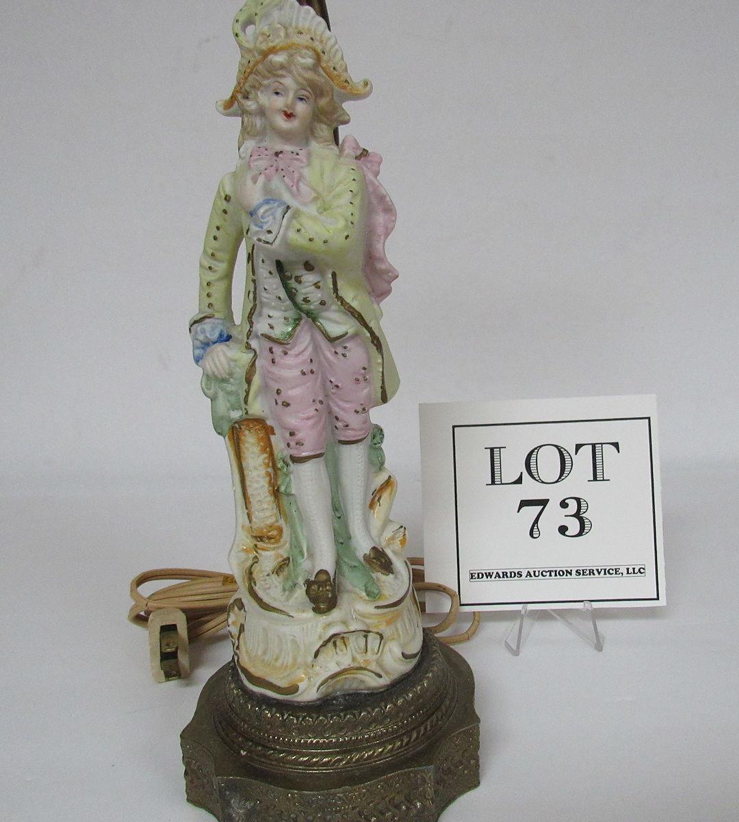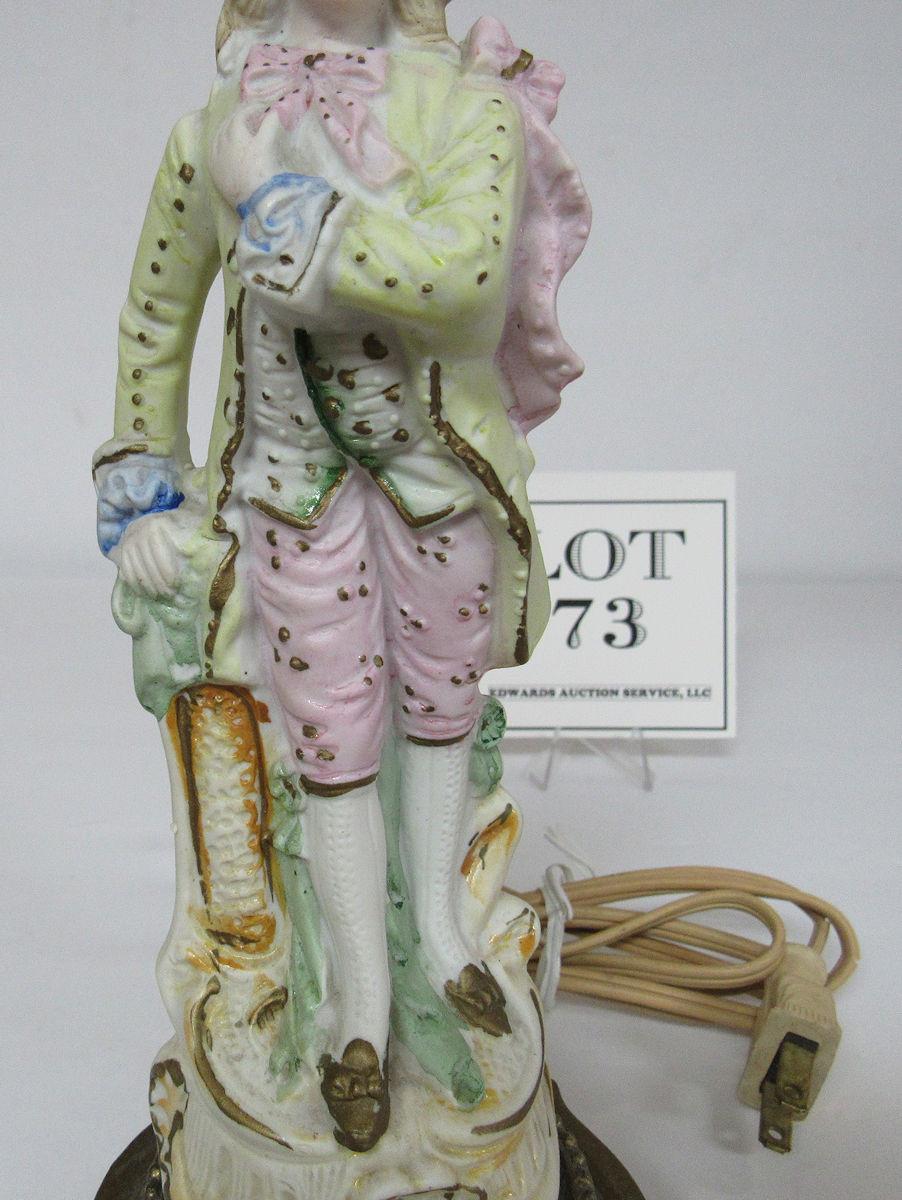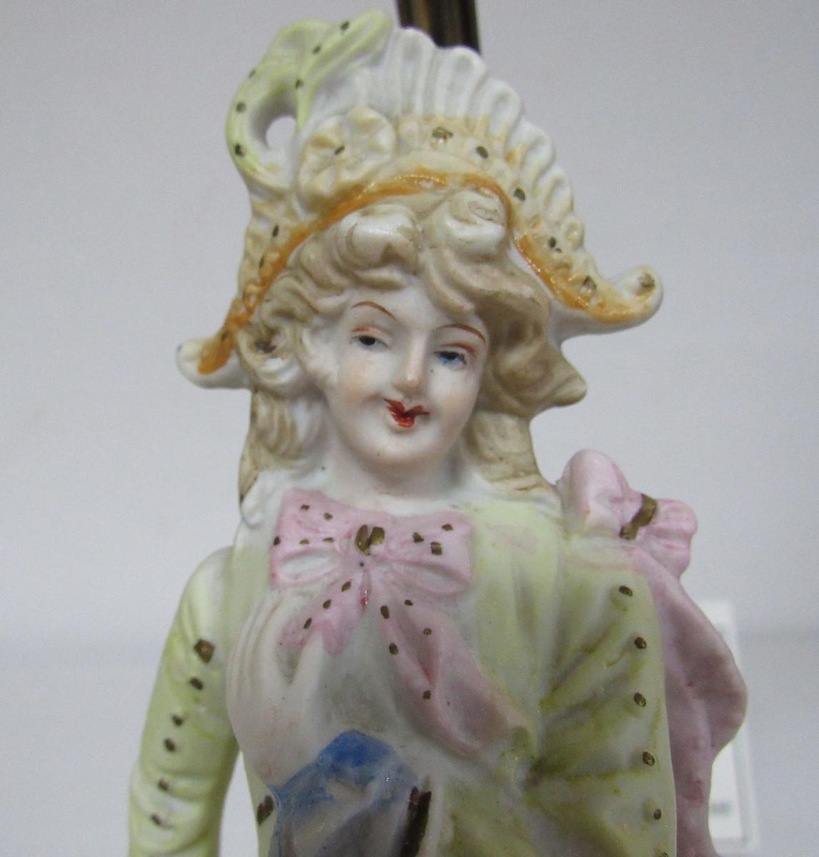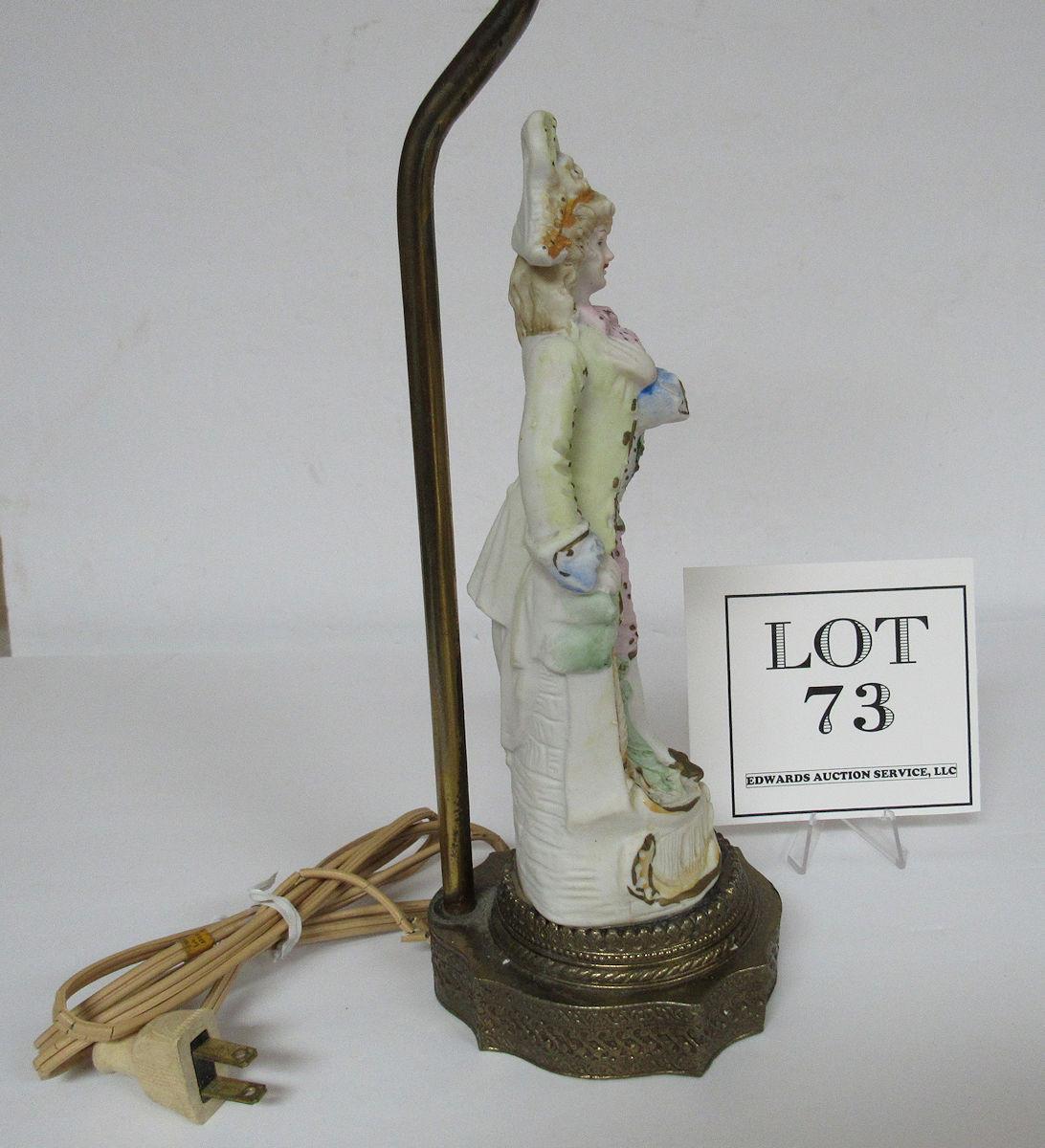 Antique Bisque Figural Lamp on Brass Base Numbered, No Country of Origin