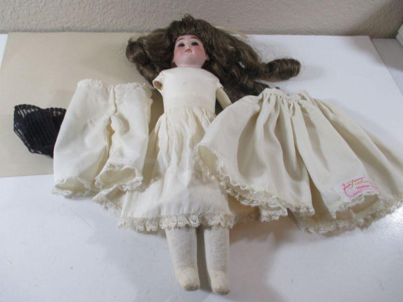Antique Bisque “German Doll with Kid Body Unknown 12" (For Repair or Parts Only) Fixer Upper