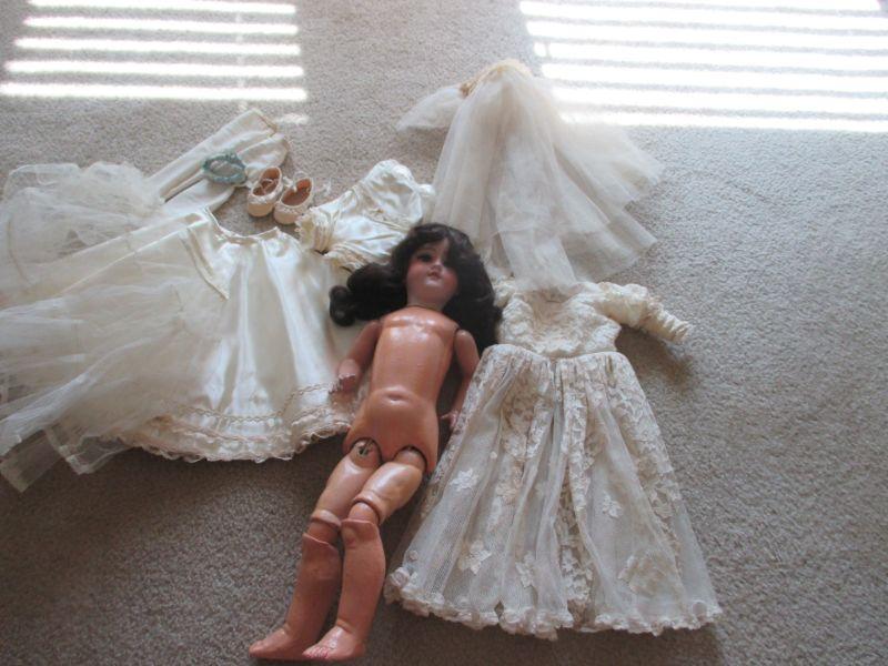 Antique Bisque Head Armand Marseille Doll Germany 390 A.9 M. 24"Composition Body , Comes with a wedding outfit, need light TLC from aging, tightening. No Hairlines are visible . Great fixer-upper