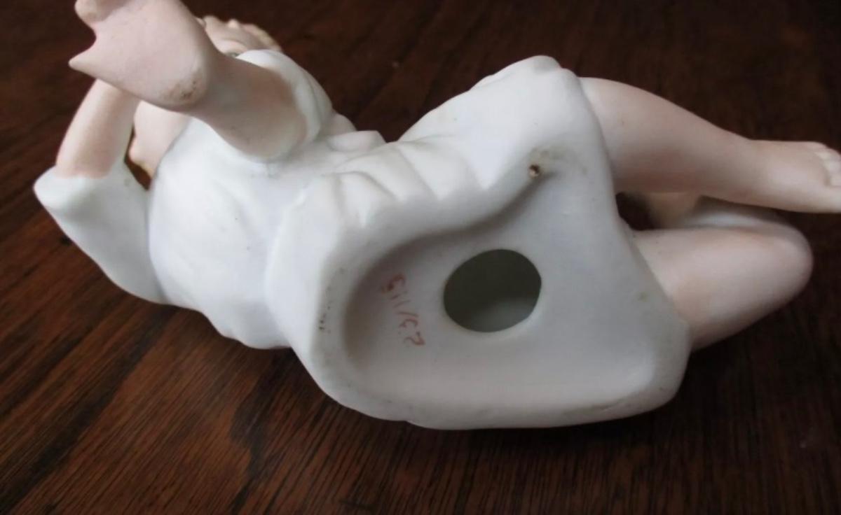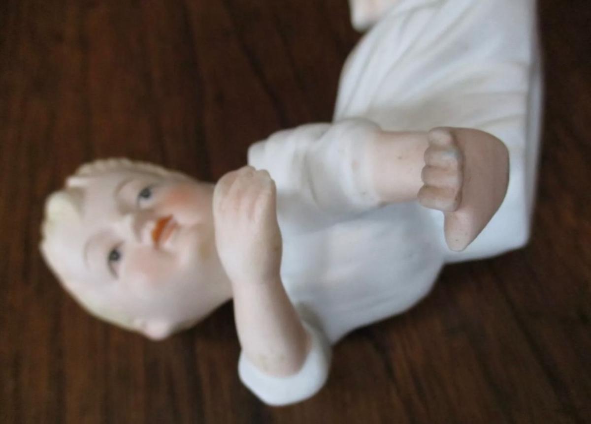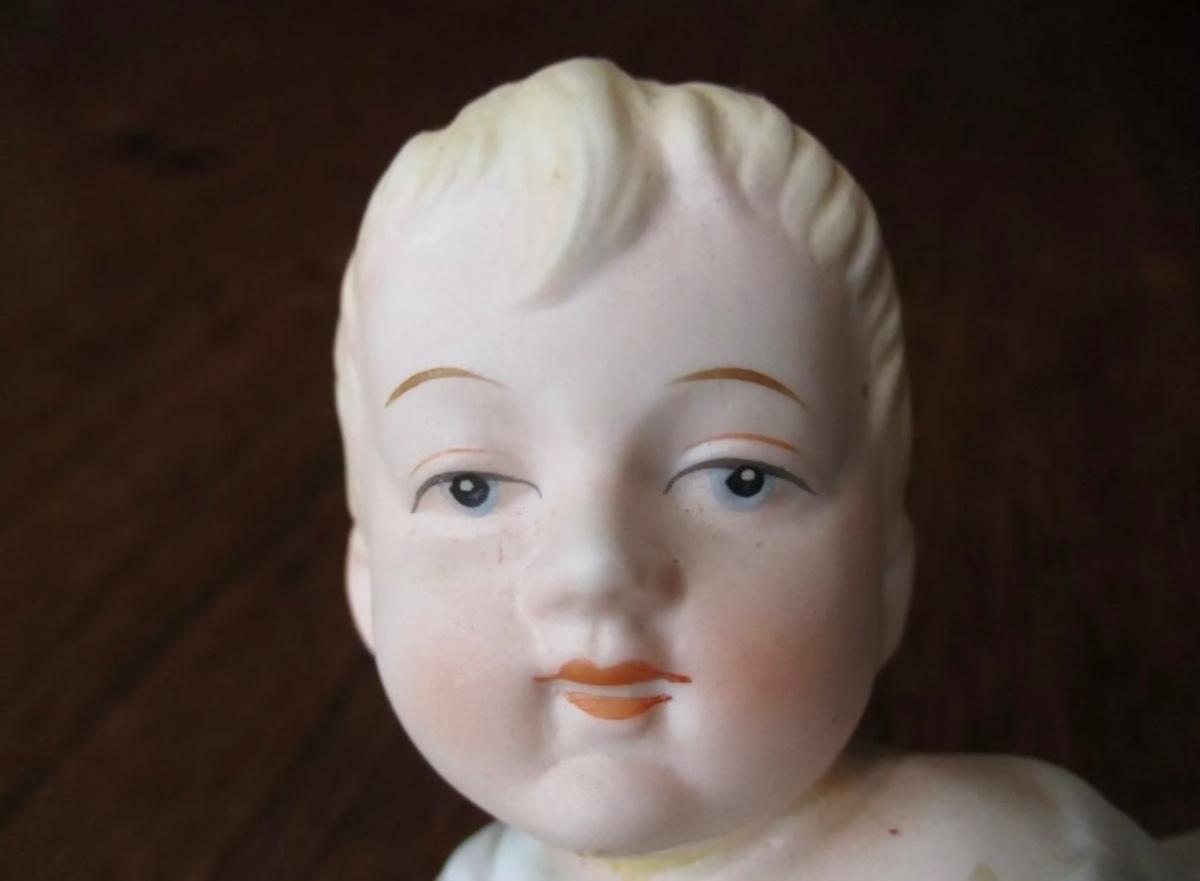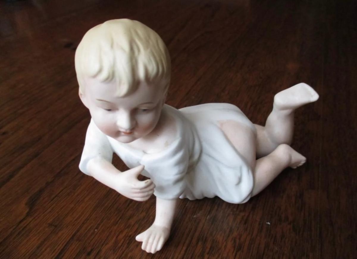 Antique bisque porcelain, crawling piano baby boy #23–115