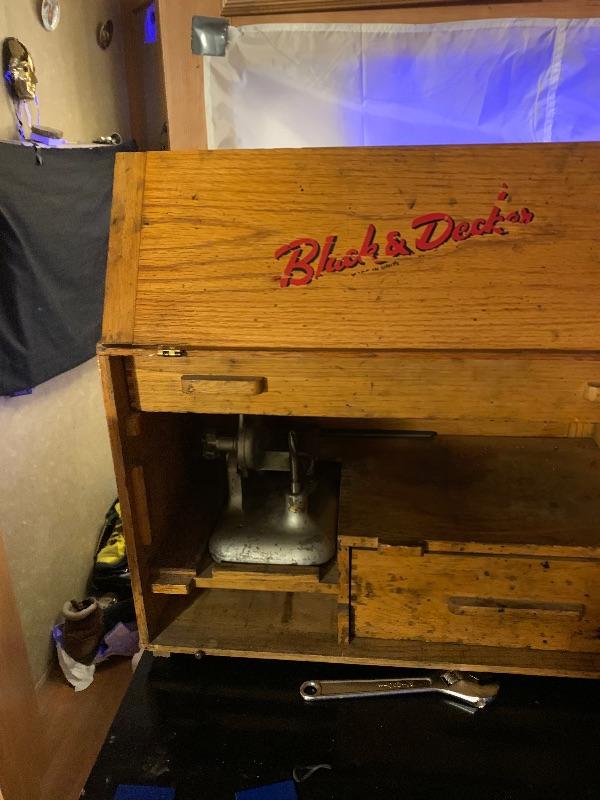 Vintage 1930”s Wooden Case Black and Decker Valve Seat Grinder great working condition all original.