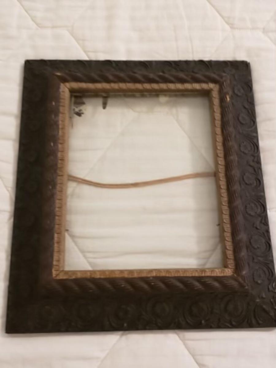 Antique black & gold wooden frame   13w x 15H. Picture opening 8 x10.