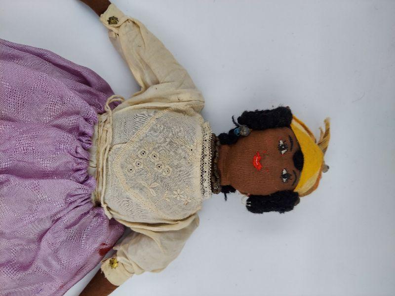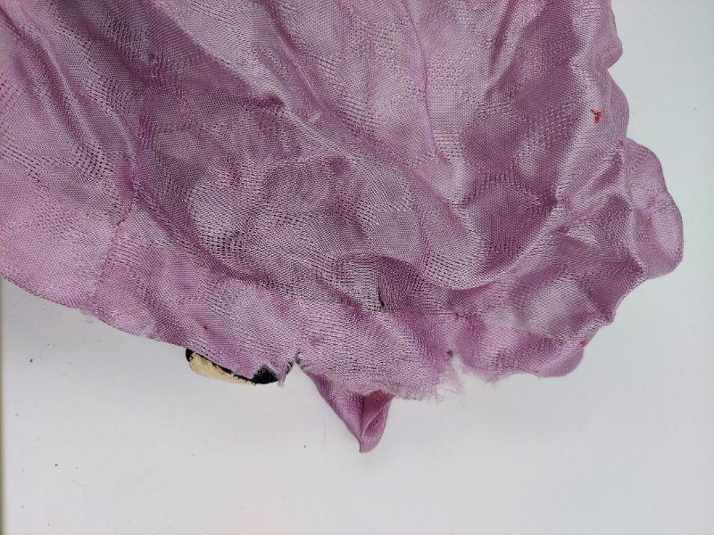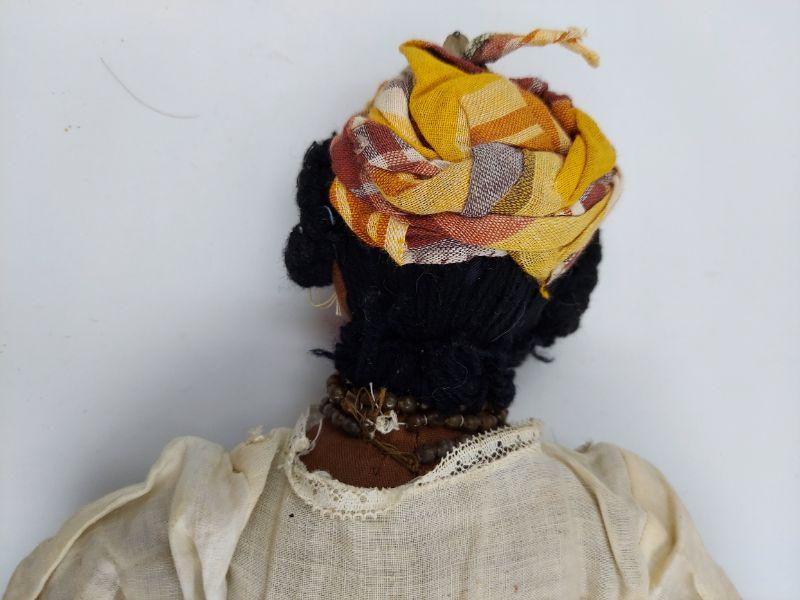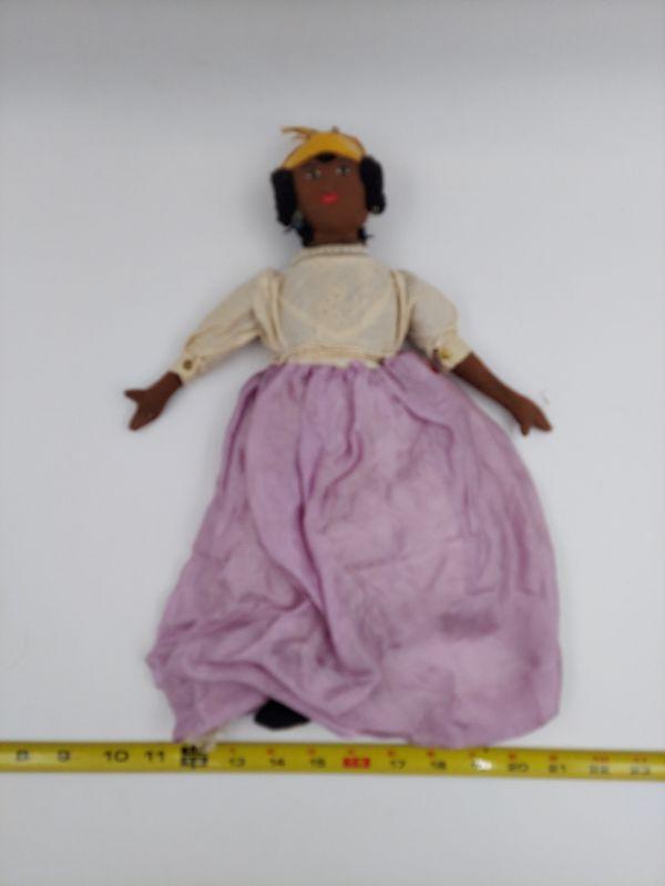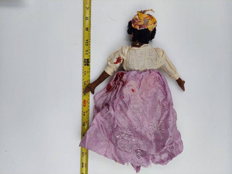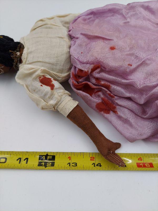 Has some discoloration on the back of her dress. She is absolutely beautiful and an amazing piece of history!
