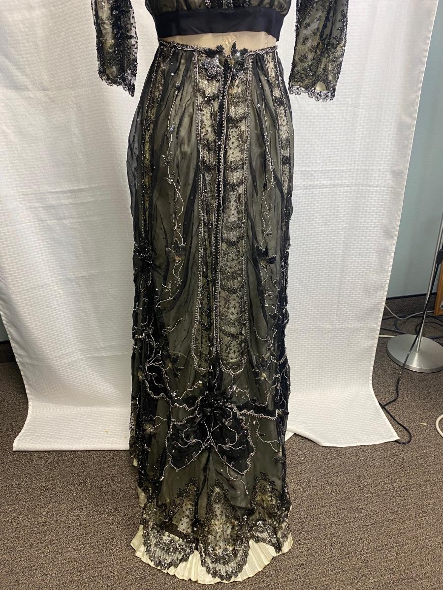 Antique Black Over White Embroidered Sequined Two Piece Gothic Victorian Dress Skirt Blouse