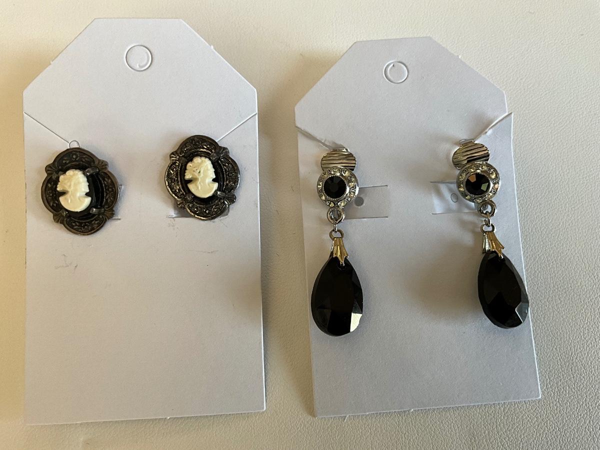 Antique Black with White Cameo CE, Black Onyx w/crystal Drop CE